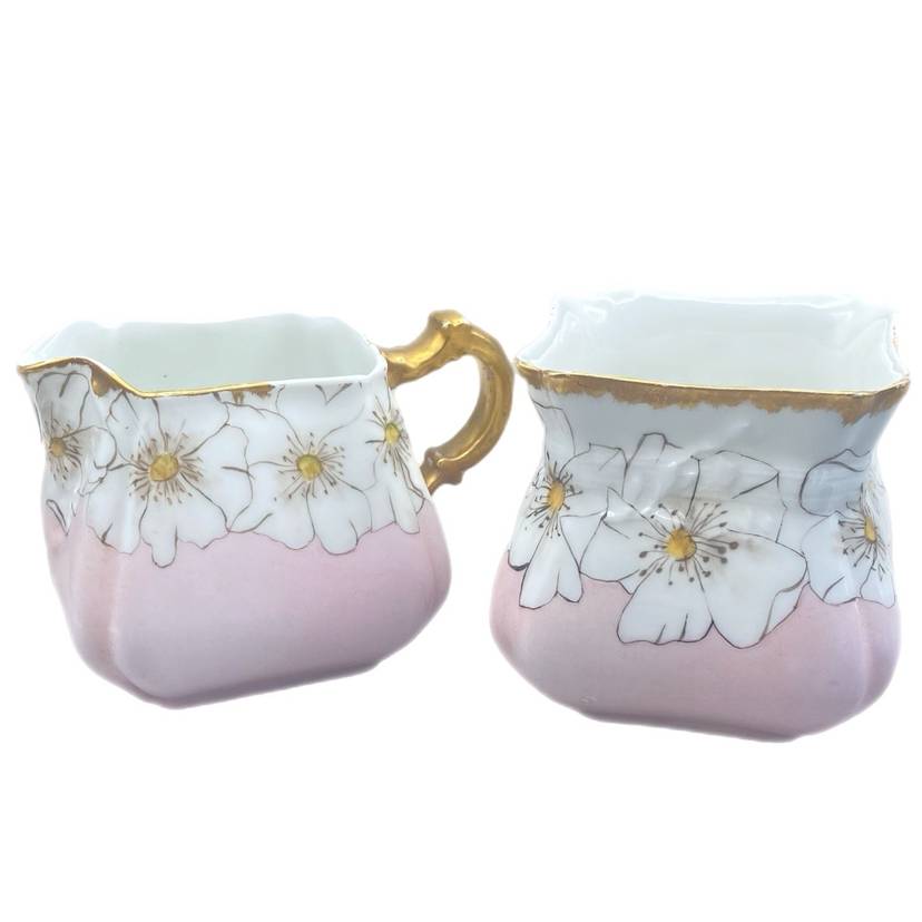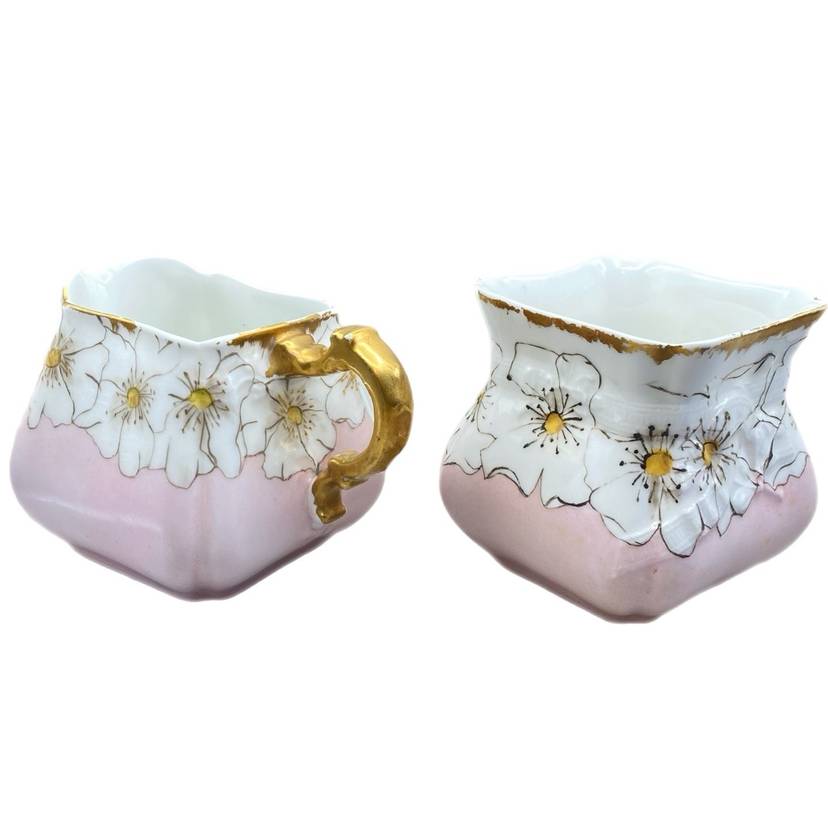 Antique Pink Porcelain Havilland Co Limoges Open Sugar Creamer Daisy Floral