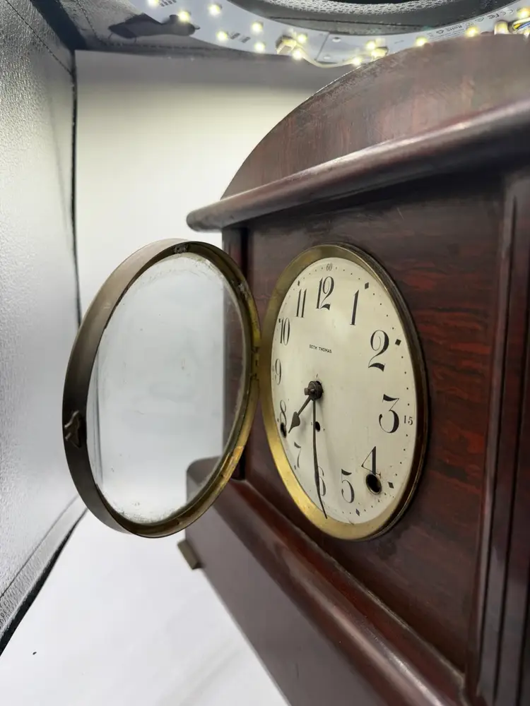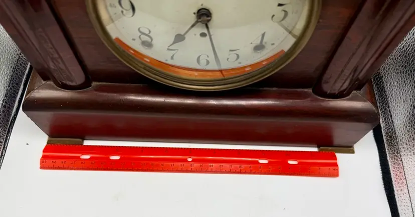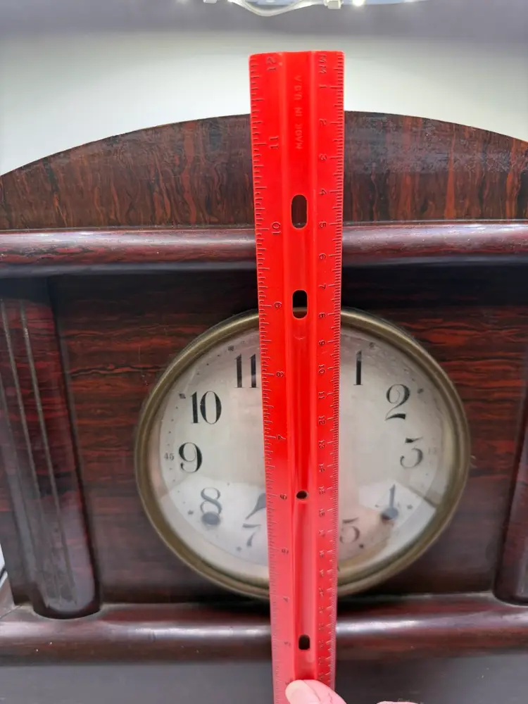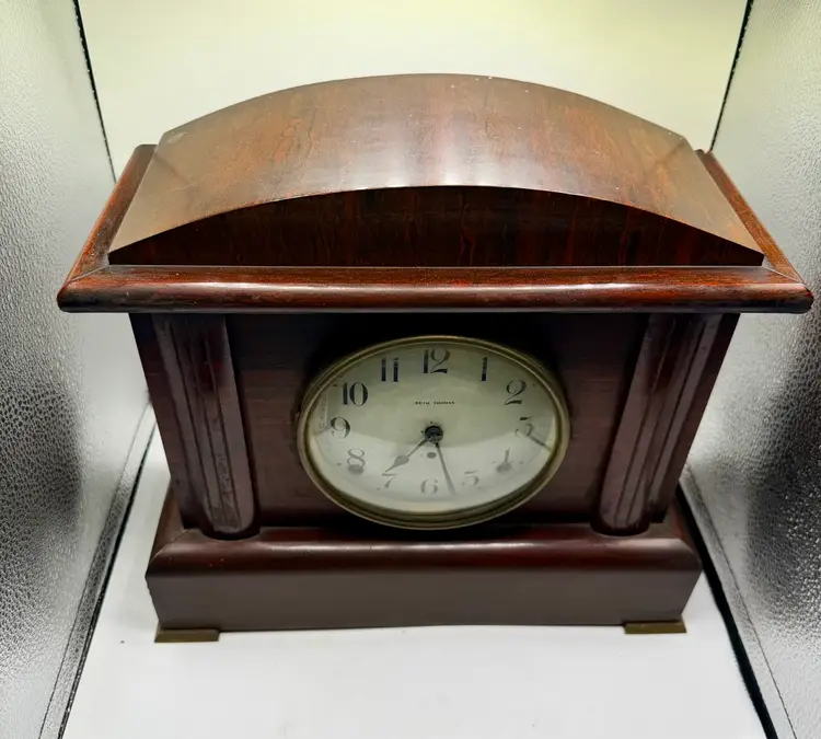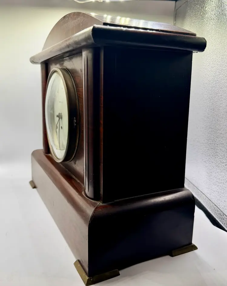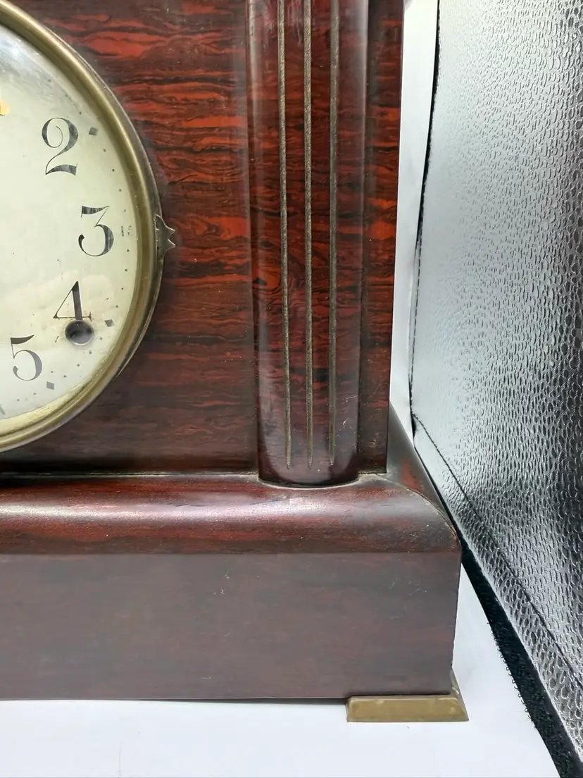 The Antique Seth Thomas Adamantine 8 Day Rosewood Mantle Clock is a vintage mantle clock with a mechanical movement, perfect for collectors or those looking to add a touch of antique charm to their home decor. Made in the United States, this rectangular clock features a brown rosewood frame and a unique 8-day feature, adding to its appeal.