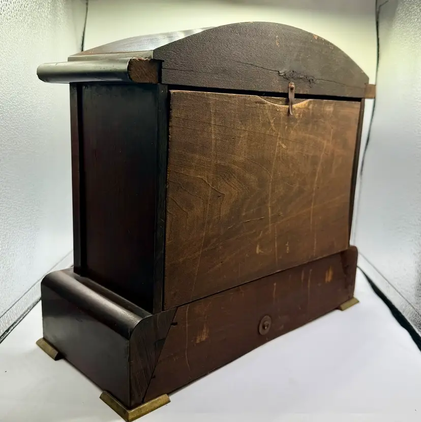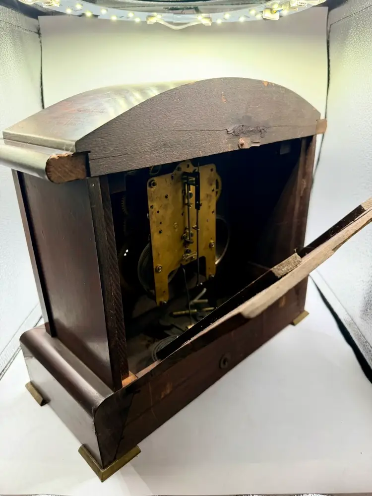 All pieces appear to be present, key, pendulum etc. This is UNTESTED. It may work perfectly well, however I am pricing as a ‘parts’ clock. This could be your lucky day if it works when cleaned and wound!!