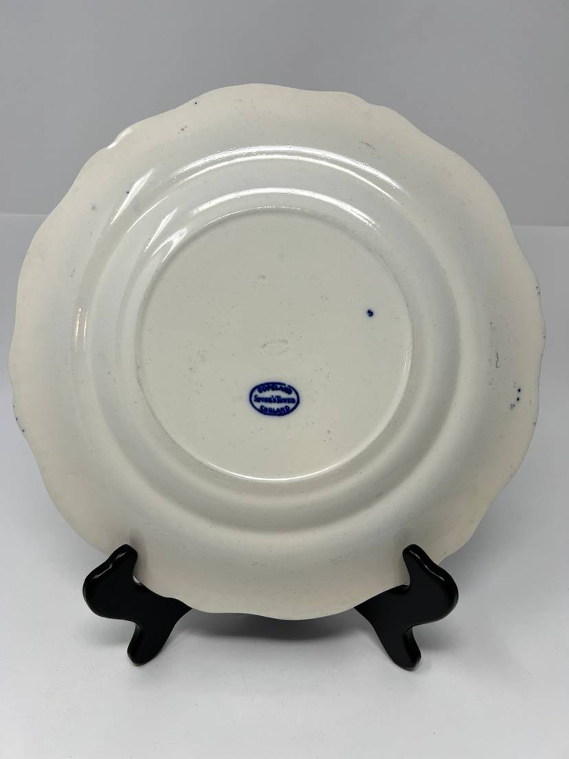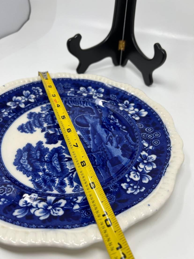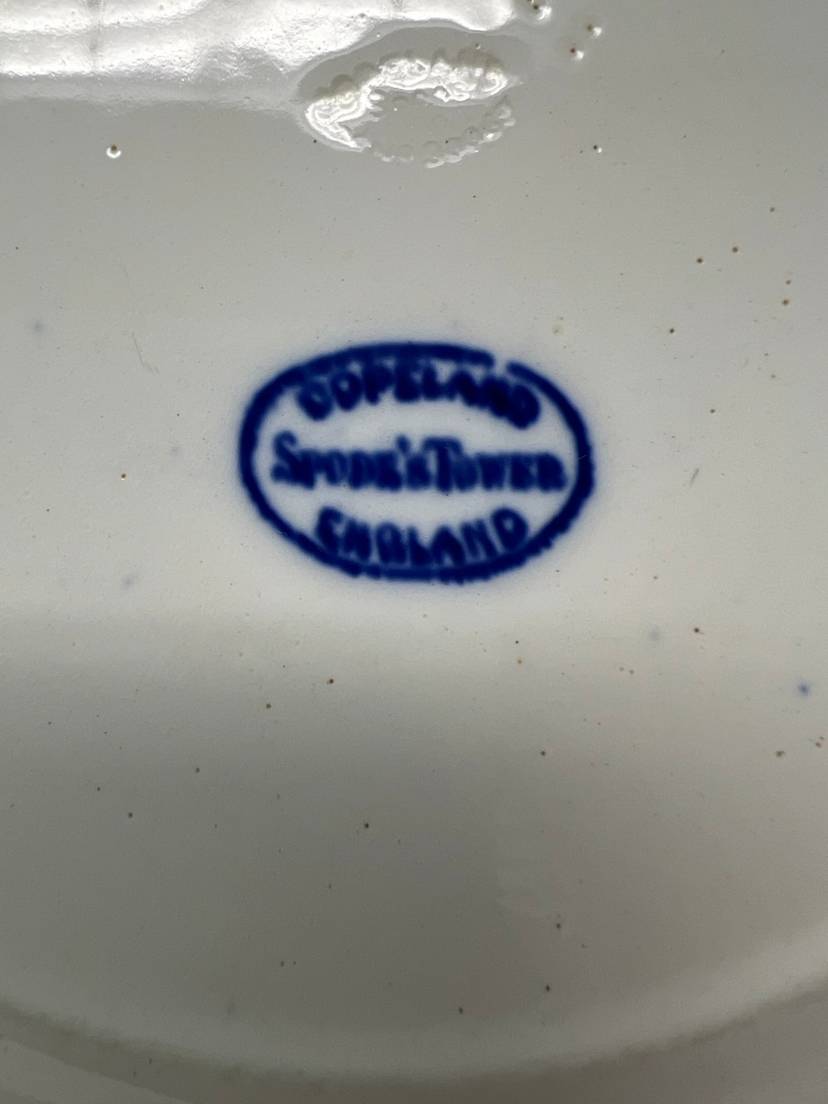 This antique Spode dinner plate features a stunning blue floral bridge castle scene, handcrafted in England by Copeland. The plate measures 10.5 inches in diameter and is made of high-quality porcelain material. The intricate floral pattern and detailed scene make this plate a beautiful addition to any collection or a unique piece for everyday use. Perfect for collectors of English pottery or those who appreciate the beauty of antique dinnerware.