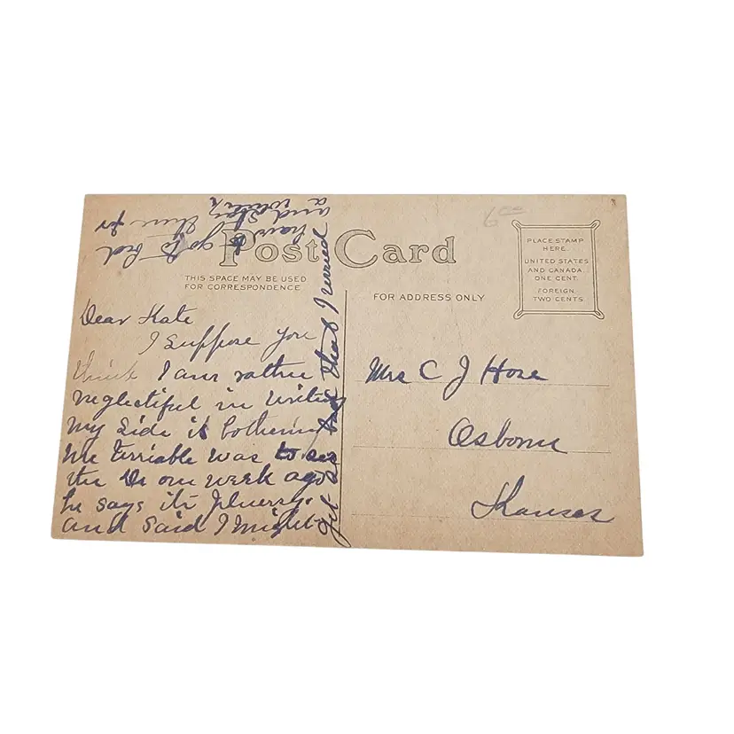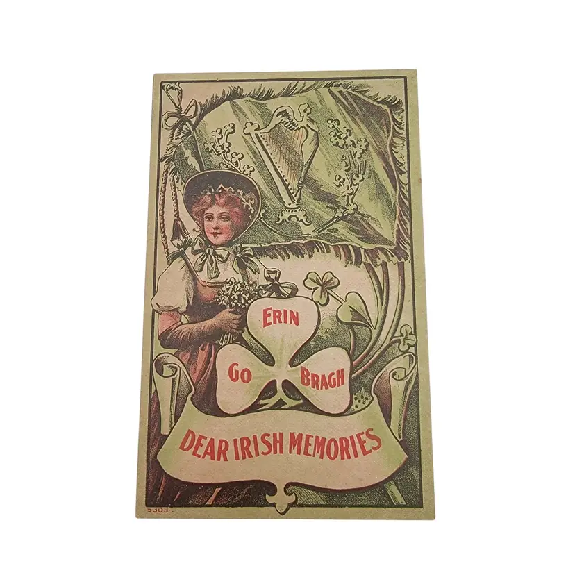 This antique postcard tells of Irish pride with its Erin Go Bragh and shamrock design. A heartfelt handwritten message graces the reverse side, echoing whispers of yesteryears.