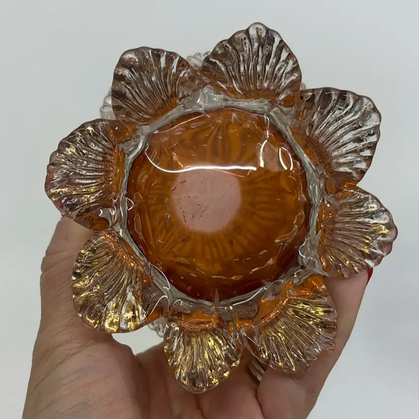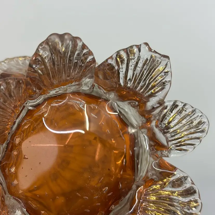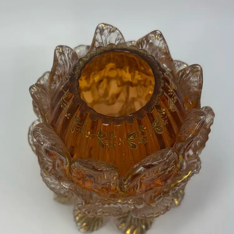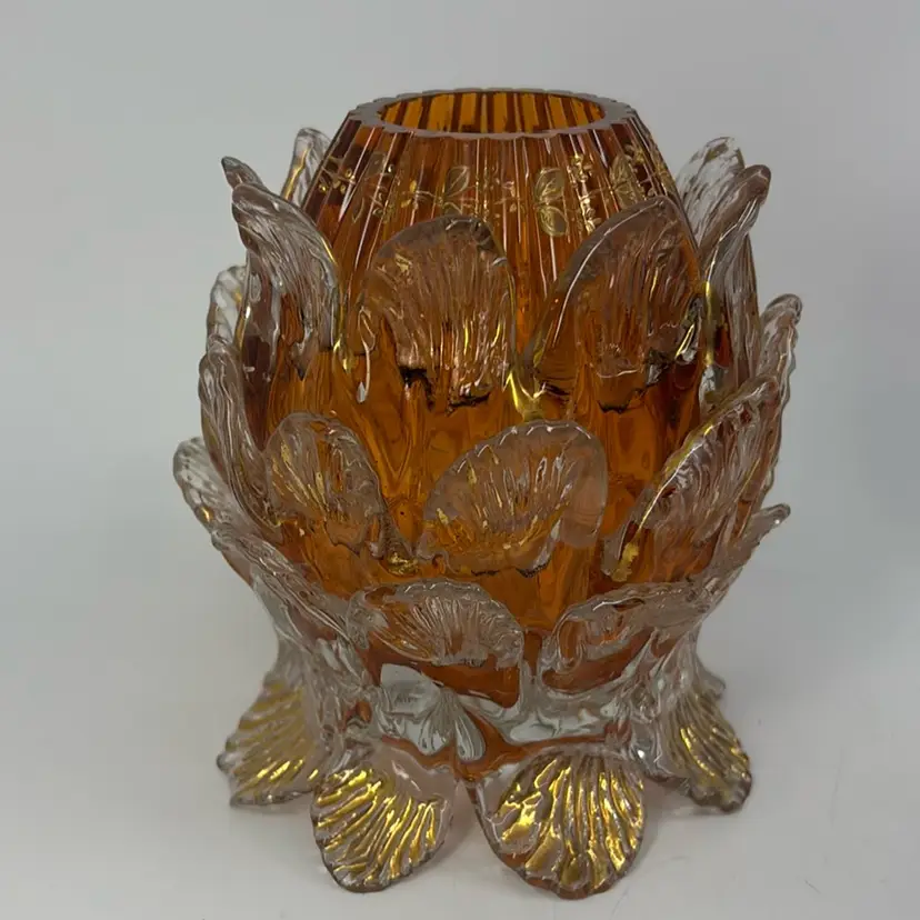 Chip on one of the surrounding leaves and one of the base leaves as shown in pictures. Some where to some other leaves. Will show in live. Please review pictures for condition before bidding.