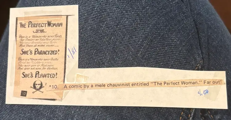 This listing is for one antique postcard featuring outdated humor regarding what makes the perfect woman. The imagery on the front features skull and bones. The back is postmarked for 1910 and includes the original stamp and writing. This postcard is in good antique condition with light discoloration and small corner chips as seen in photos. This listing also includes a newspaper clipping from 1981 about this antique postcard. Will ship in top loader for protection.