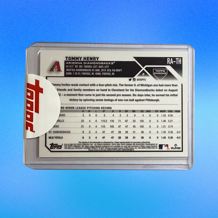 2023 Topps Chrome Tommy Henry RC Auto #RA-TH 2025 Topps Series 2 Mark Long First Pitch #FP2-5 2004 Topps Clubhouse Collection Roberto Alomar #RA HOF Game Used Jersey Patch 2024 Bowman Chrome Jordan Lawlar RC