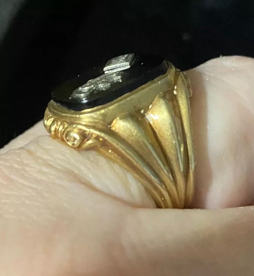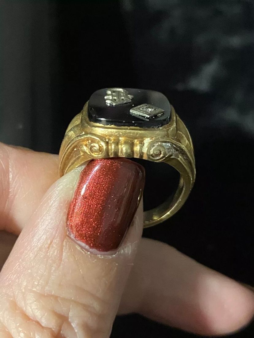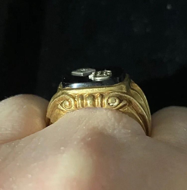 Art Deco 14k Onyx Diamond Ring Mens Sz 8.