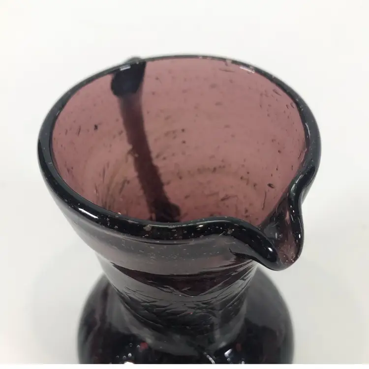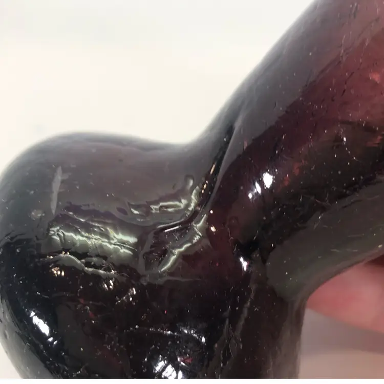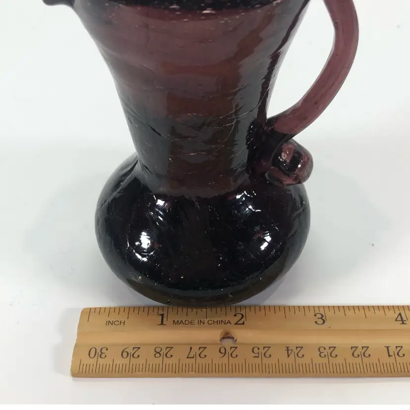 This stands 4 inches tall. There are no chips or cracks. It has a rough spot towards the bottom.