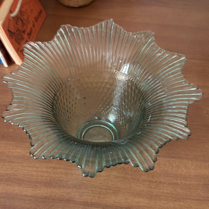 Ruffle edge diamond pattern green glass bowl. 9x4