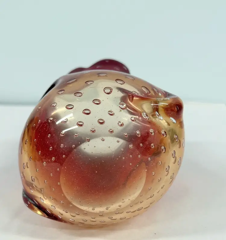 Made in the 1970s, this vase is a perfect addition to any art glass collection. The strawberry subject adds a touch of whimsy to the overall design, making it a great conversation starter. Whether you're a collector or simply looking for a beautiful decorative piece, this vase is sure to impress.