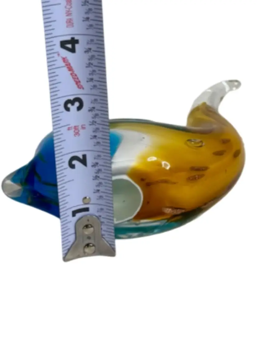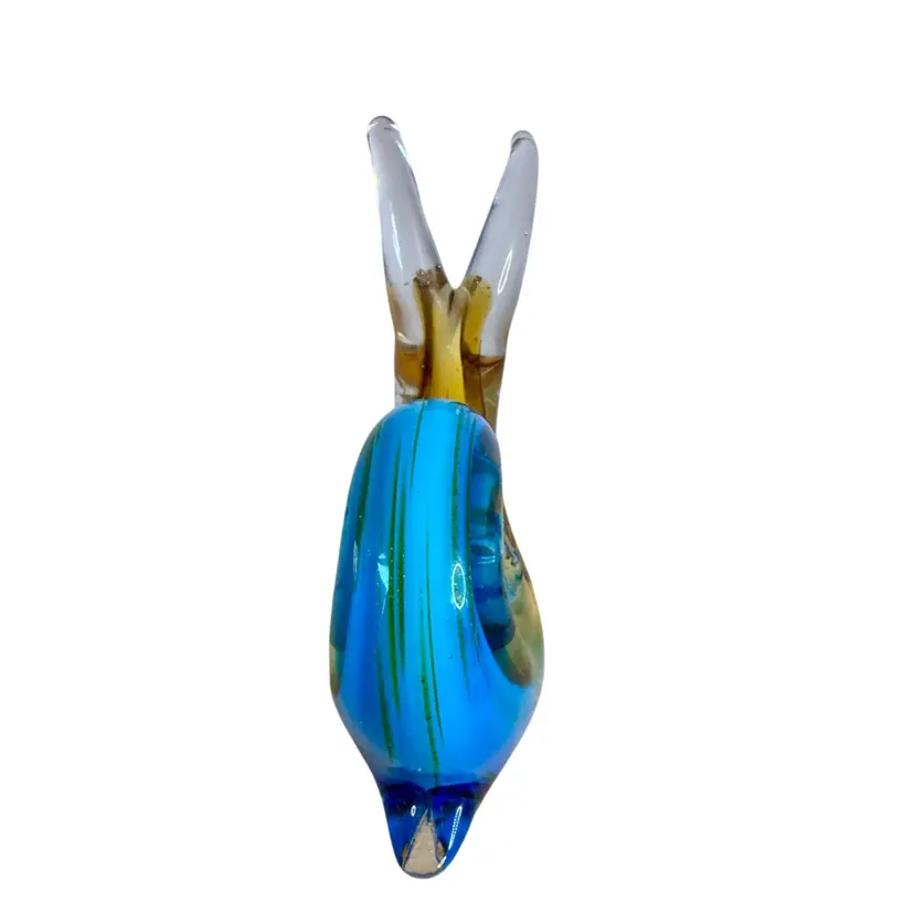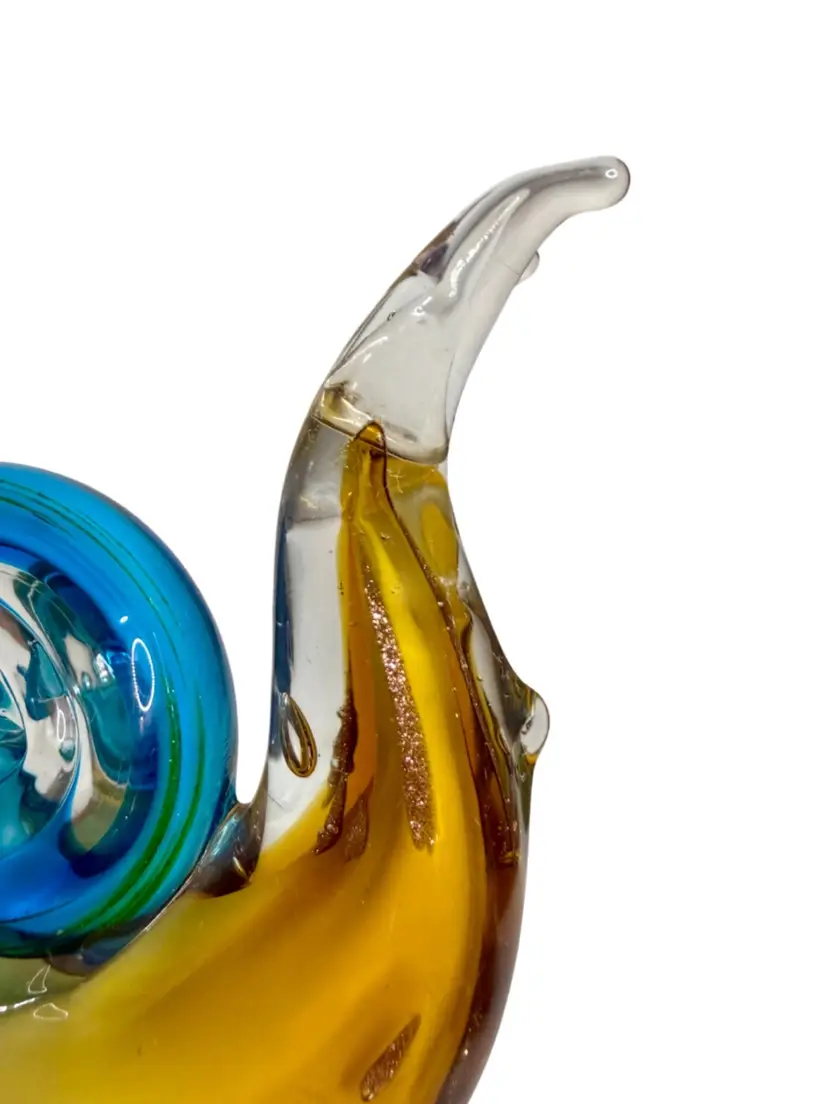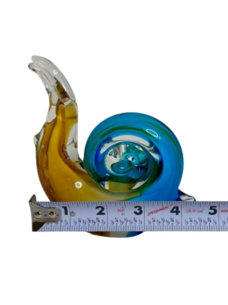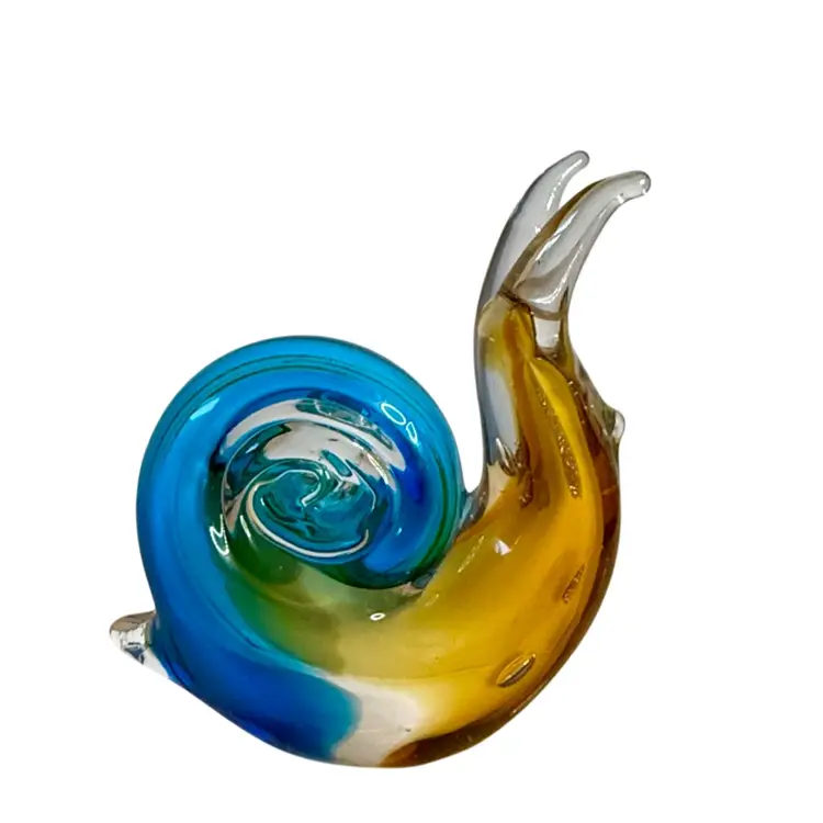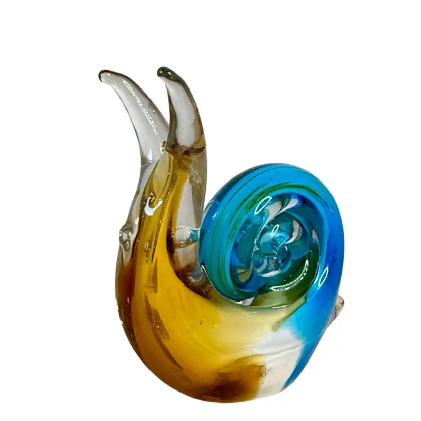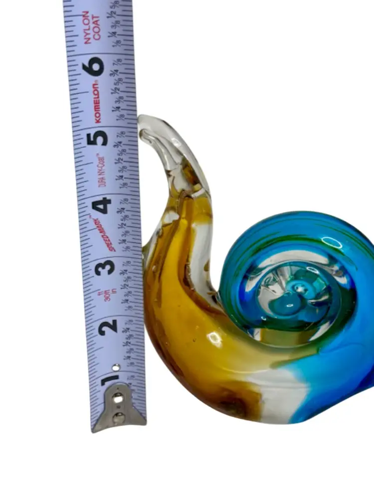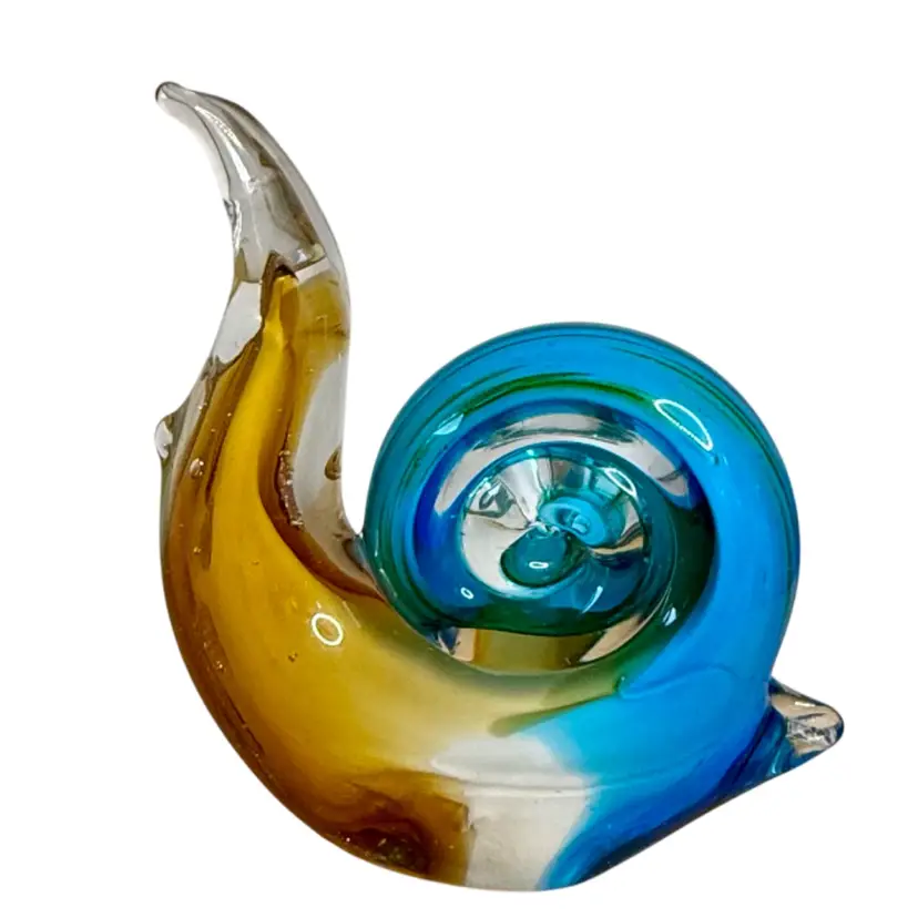 Art Glass Snail Figurine Paperweight Turquoise White Golden Brown W/Adventurine.