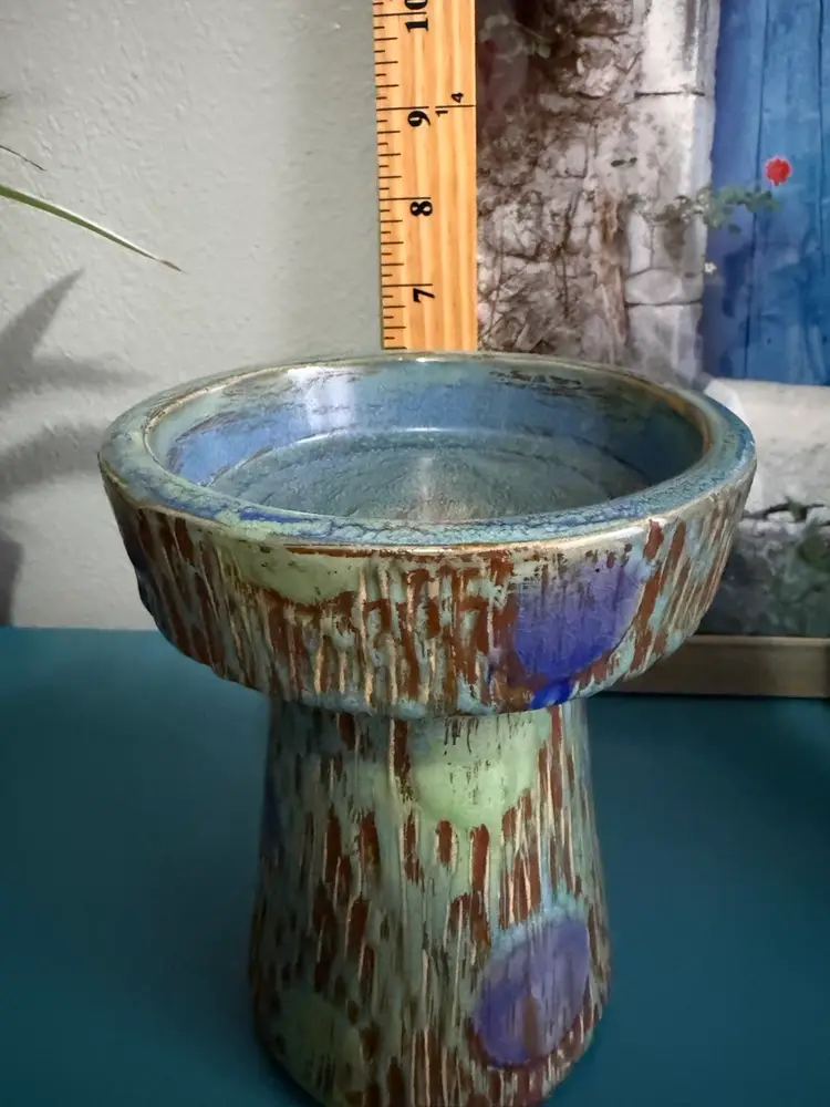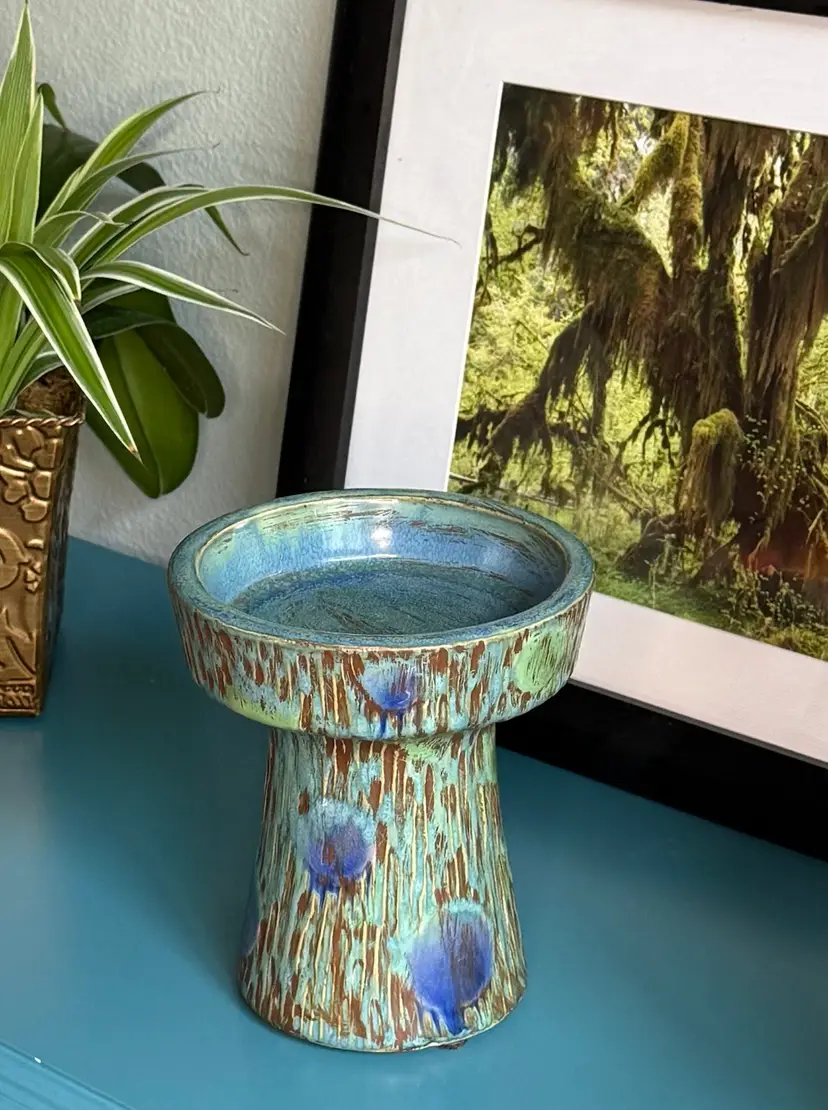 Multicolor shades of brown, blue, and green, creating an earthy and organic feel distinctive drip glaze.generally date from the Mid-Century Modern era, typically spanning from the 1940s to the 1970s.