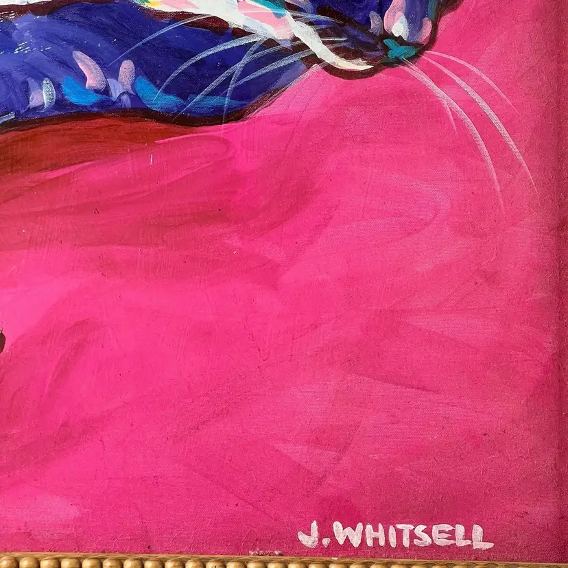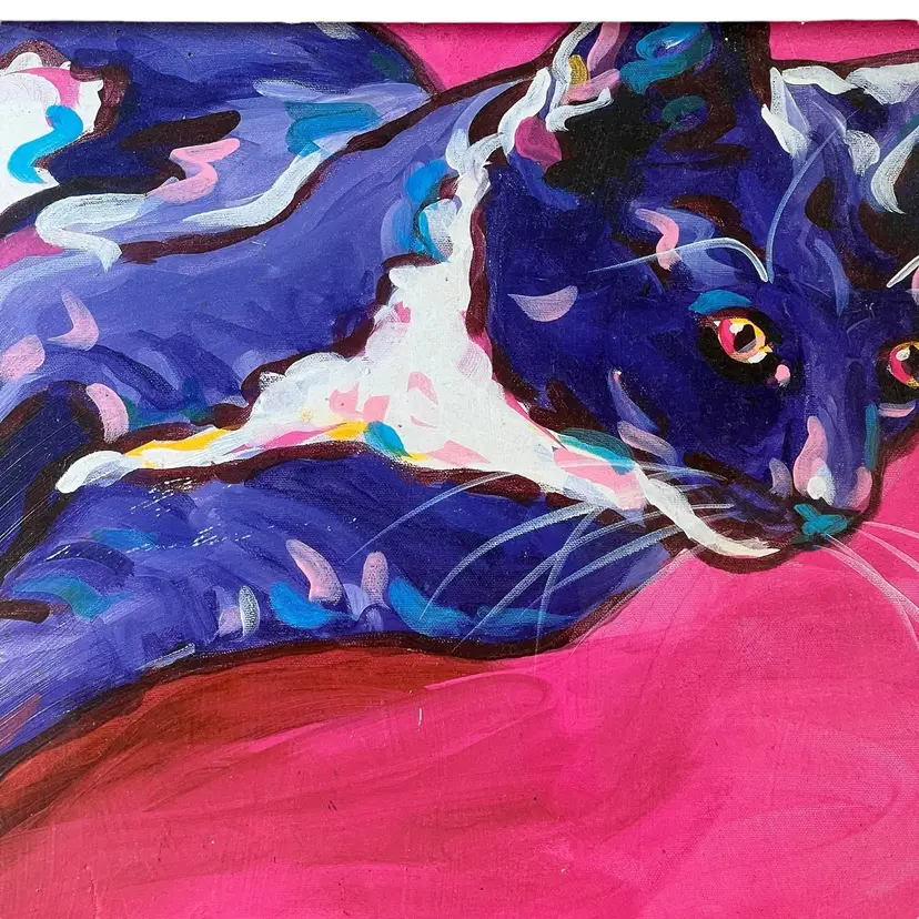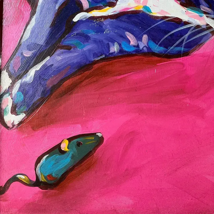 Artist Signed Acrylic 16"x16" Cat And Mouse On Pink Background