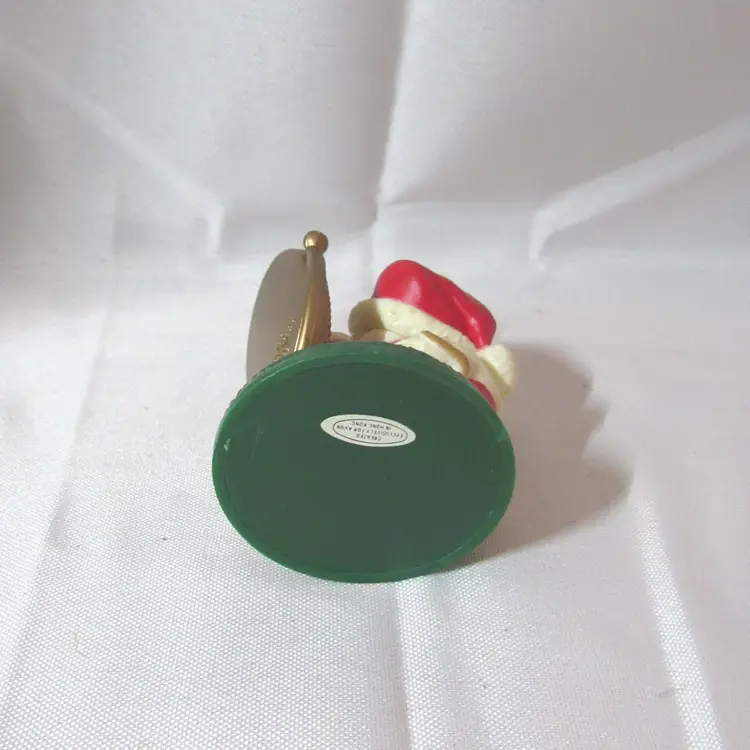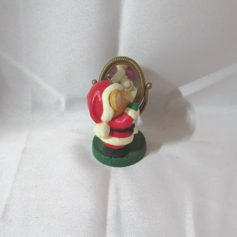 Made by Avon in 1982, Melvin is Resin and plastic. He's checking in the mirror to make sure the Santa beard gets put on right. Melvin was used on our Christmas tree every year and is gently used. I no longer have his box. 2.75" hang length x 2.25"