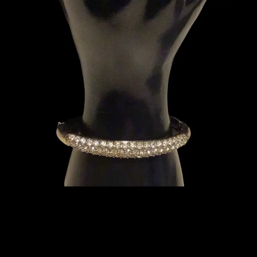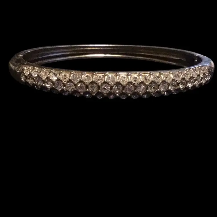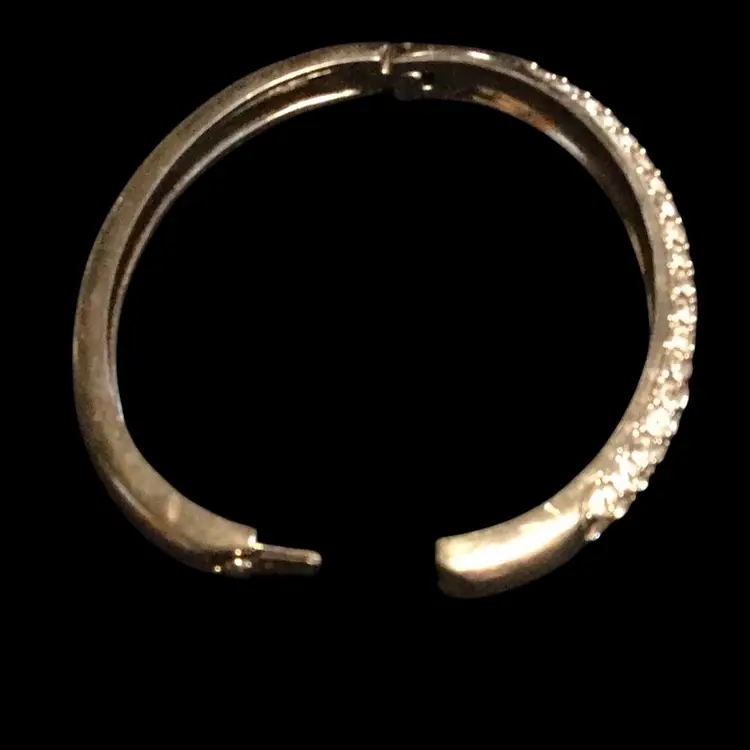 Signed NRT with pave’ set rhinestones, soft gold tone has light wear on metal, fits up to 7-1/2” wrist. #590