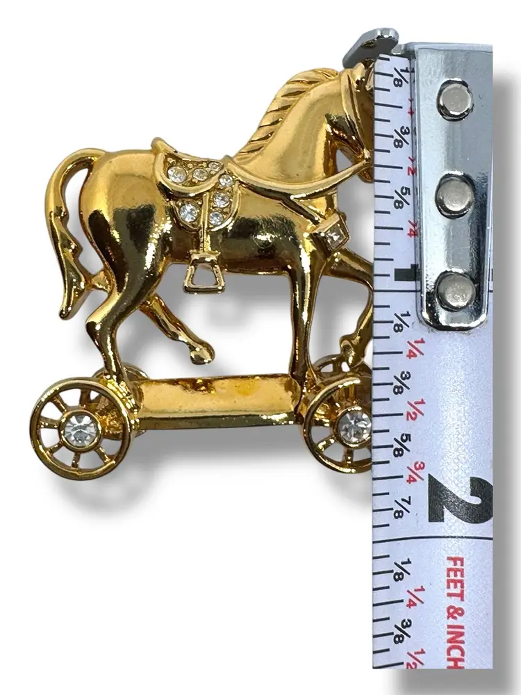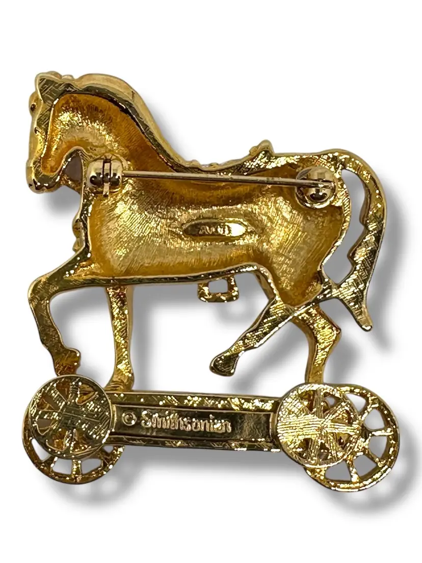 This vintage 1980s Avon Smithsonian Toy Horse brooch features a charming gold design adorned with sparkling rhinestones, making it a perfect accessory for special occasions like Mother's Day, Christmas, anniversaries, birthdays, and more. The brooch is signed by Avon and showcases a unique toy horse shape, capturing the theme of vintage toys and animals & insects. This collectible piece adds a touch of nostalgia and elegance to any outfit, making it a timeless addition to any jewelry collection for both men and women. It is in very good condition. It measures one and 1/2 inches in height. It will be carefully packaged and shipped right away to you.