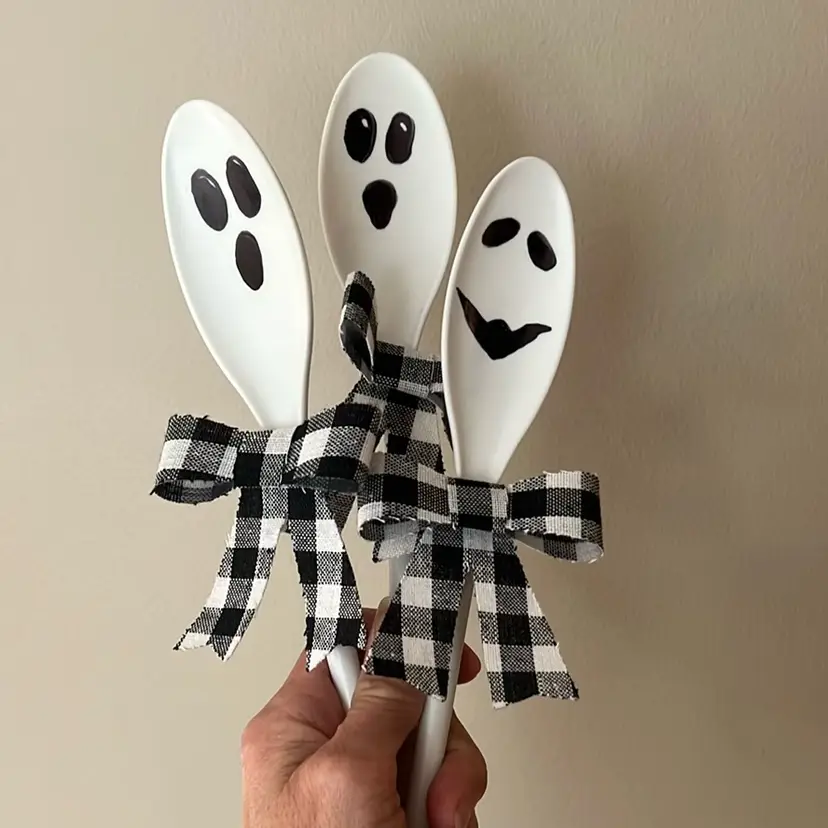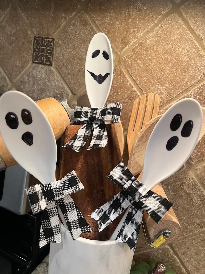 Aren’t these just too stinking cute. This auction is just for the three white mixing spoons. The other pictures are just for demonstration of how you can add them in with your wooden spoons for the spooky season in this auction. You will get two long spins that are approximately 13 1/2 inches long and one shorter spoon that is approximately 9 1/2 inches long.