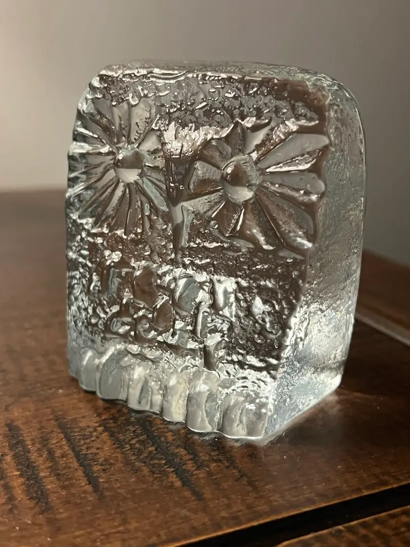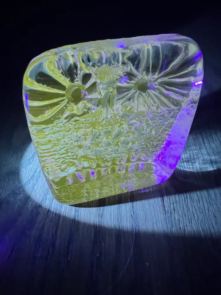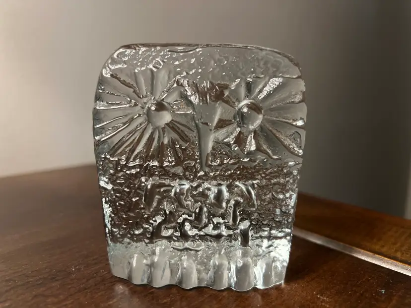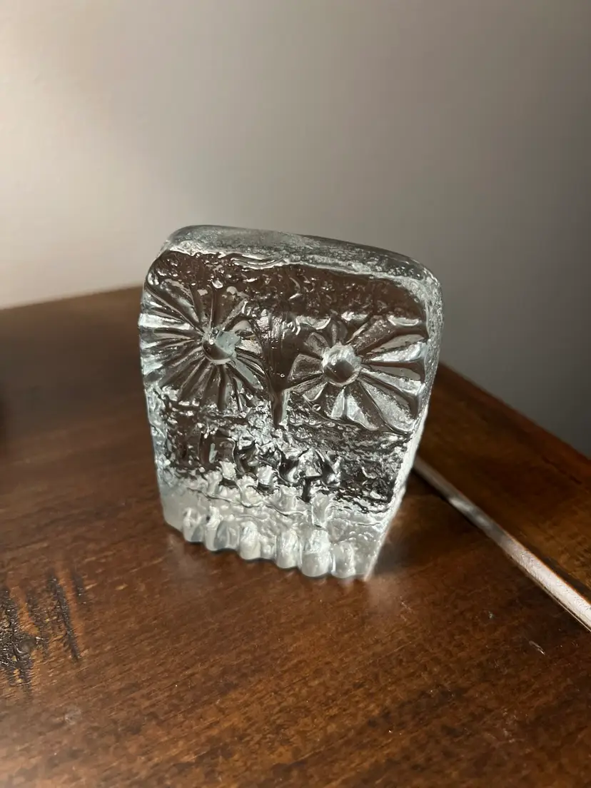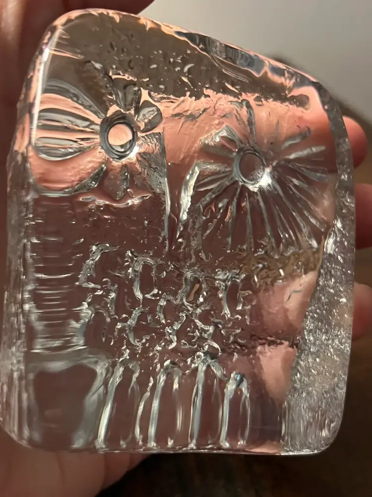 Wonderful vintage condition with no chips or cracks. Mr. Google could not make his mind up on this one. It was seriously 50-50 across the board if this was kosta Bota or blenko I did not see any type of signature. It does have a slight green UV glow.