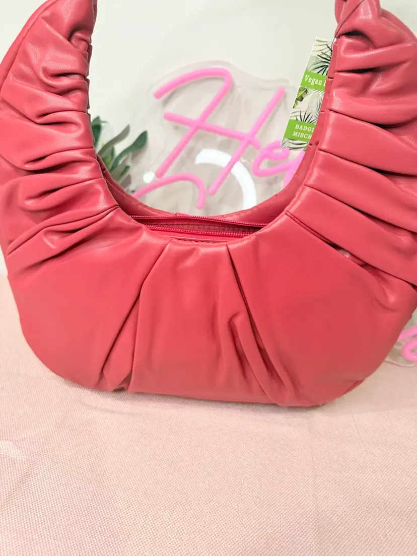 Introducing the Badgley Mischka Hobo Bag, a stunning accessory crafted from luxurious vegan leather in a vibrant red hue. This bag effortlessly combines style and functionality, featuring a spacious interior perfect for all your essentials and a comfortable shoulder strap for easy carrying. The elegant logo embellishment adds a touch of sophistication, making it an ideal choice for both casual outings and special occasions. Whether you're heading to brunch or a night out, this bag is your perfect companion. New with tags.