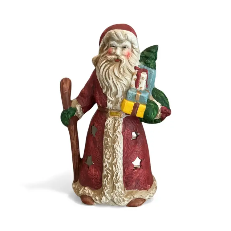 Xmas Bundle Includes: -Crackle Santa Figurine - 10" -Ceramic Candle Holder - 9" -2 Ceramic Trees (small one has a minor chip and taller one has a tip repair) -Metal Santa Lantern - 13" -Resin Whimsical Santa Figurine All items will be shipped in one box.