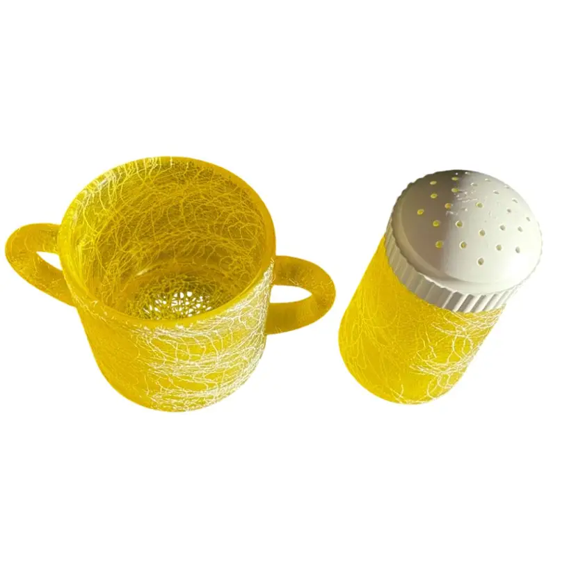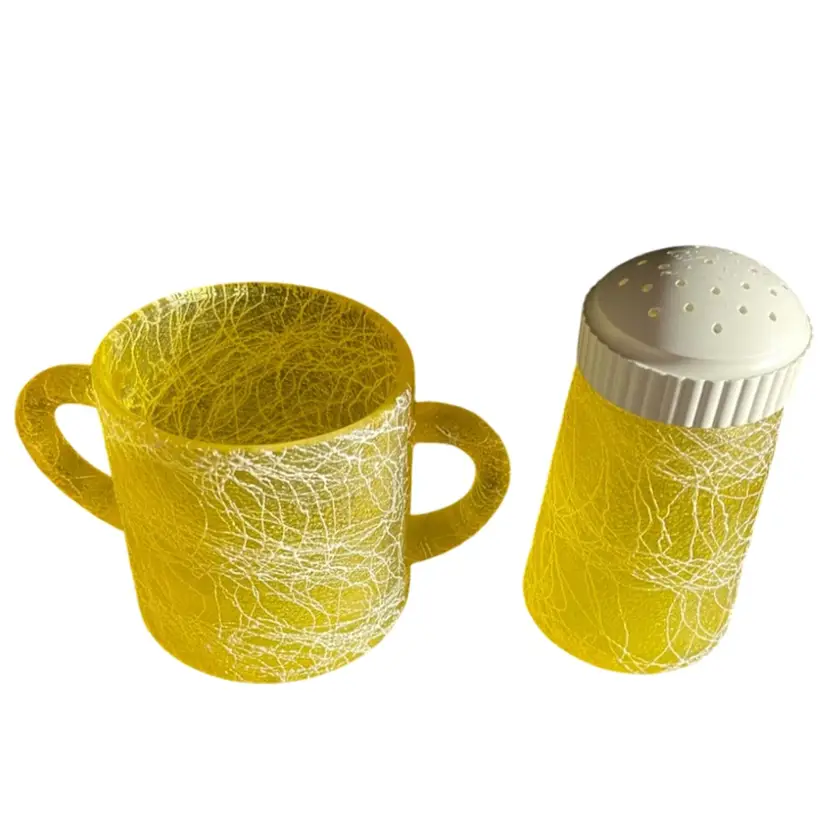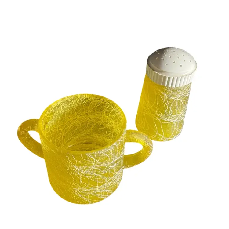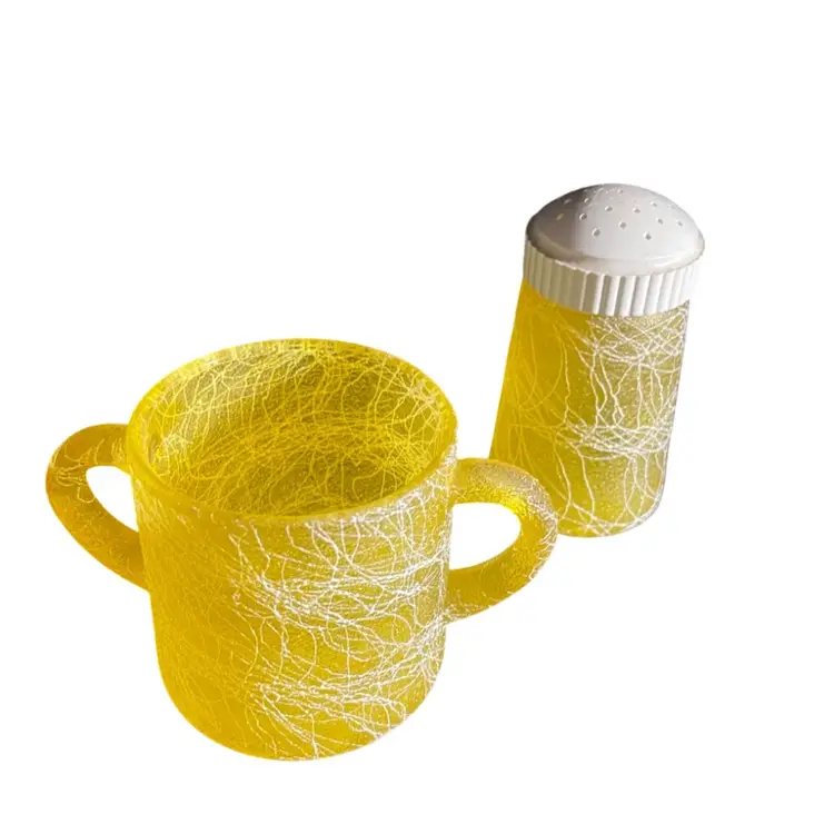 Bartlett Collins Color Craft Yellow Spaghetti String Shaker And Sugar Bowl. Condition is Used. Shipped with USPS Mail