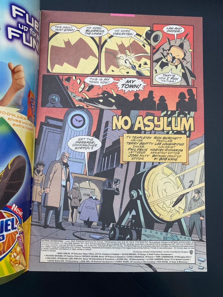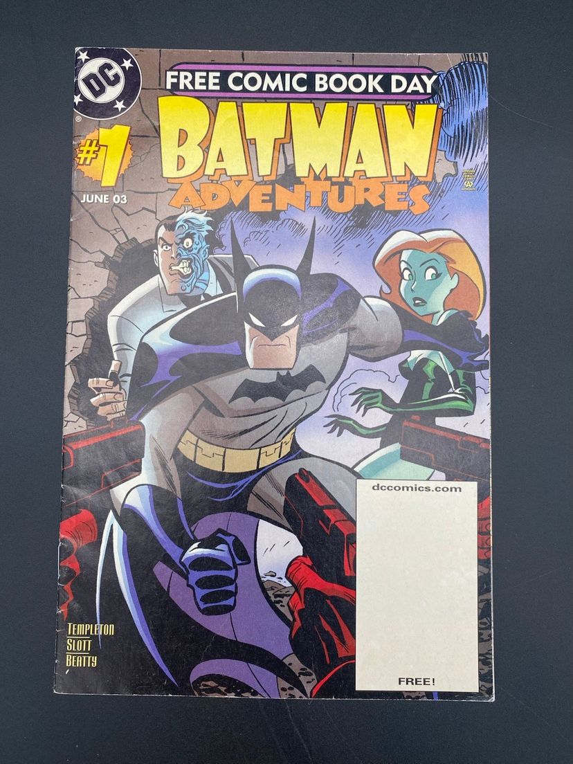 You are purchasing one Batman Adventures #1 Free Comic Book Day Edition by DC from June 2003. This Book is in overall good condition. Back bottom left and front top right corners of the Cover have a crease. Minor exterior spine wear. No issues with the Binding. Interior pages have no rips, stains, folds or writing.