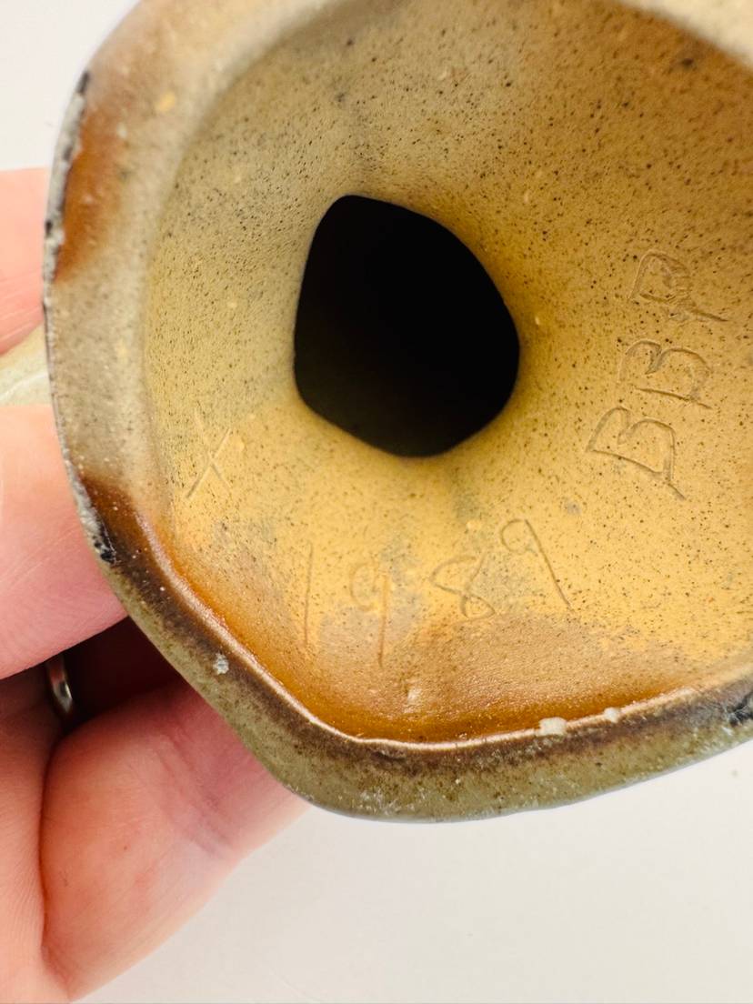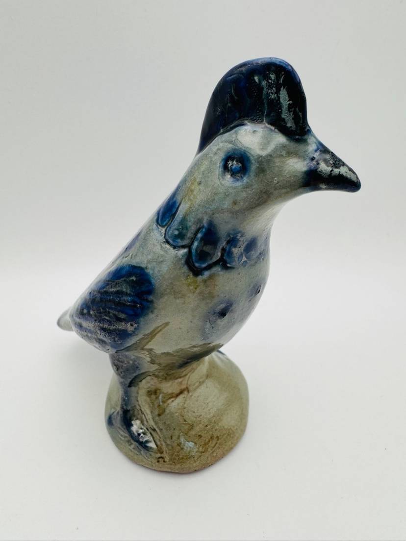This sweet bird is a signed Beaumont Brothers Pottery Salt Glaze piece sign 1989. It stands at 5 1/2 inches tall and is 4” front to back