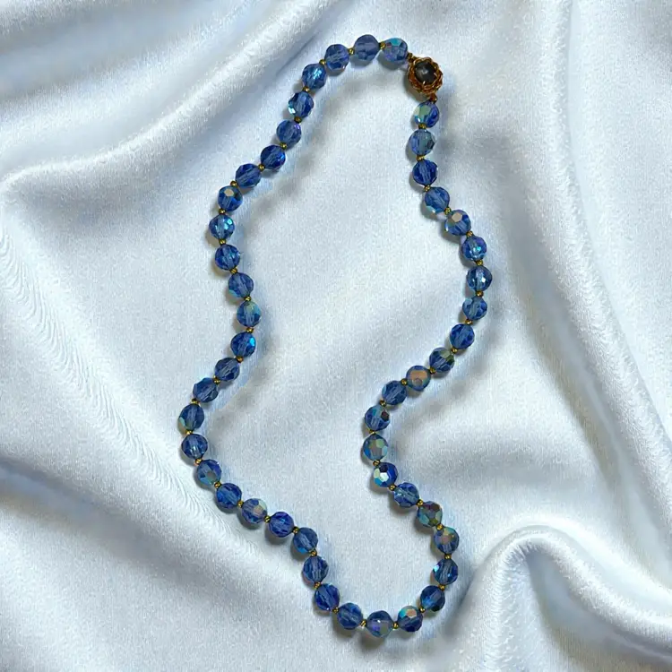 Beautiful Blue Crystal Aurora Borealis Beaded Necklace. 16 Inches.