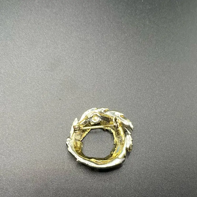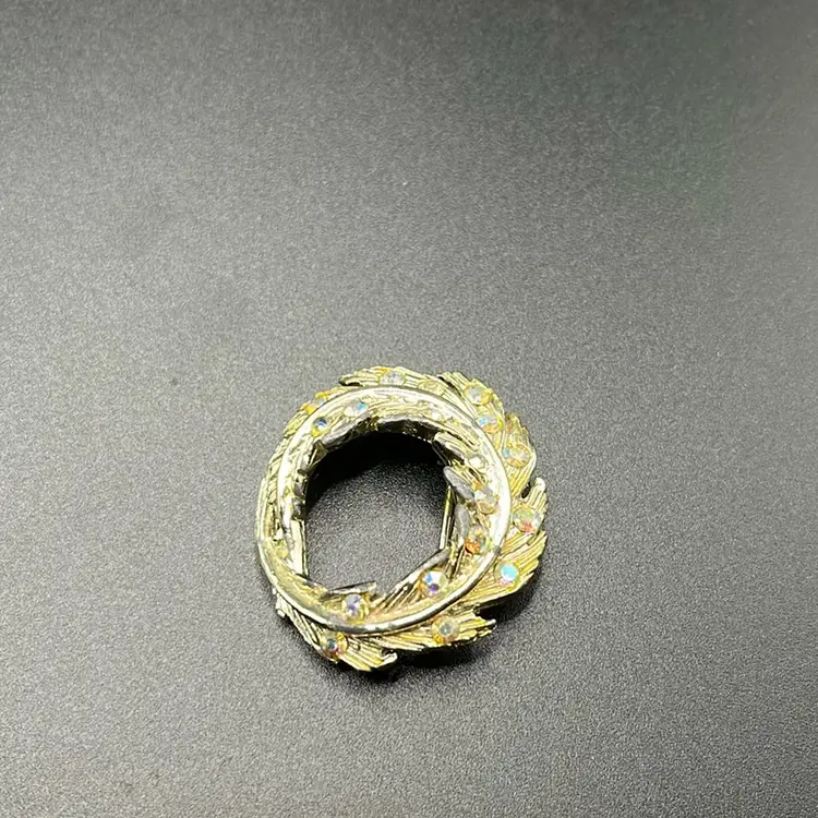 Beautiful Feather Circle BroochAB Stones Gold Tone 1 1/4” Wide