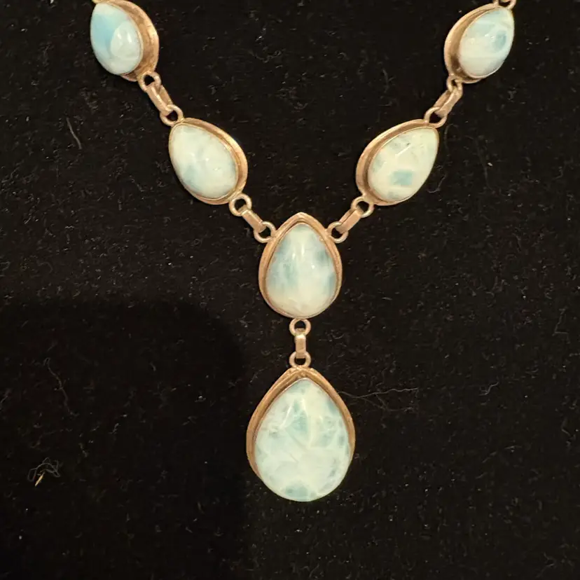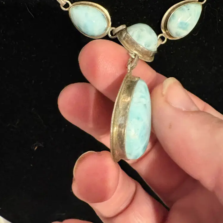 Beautiful Larimar & 925 Silver Necklace 925 16” long