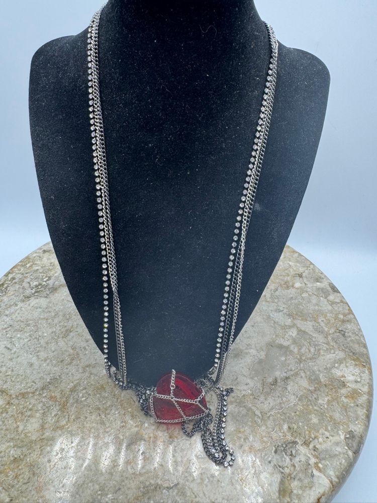 Beautiful Simply Vera Wang Red Art Glass & Rhinestone Multi Chain Necklace 32”