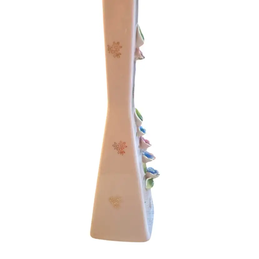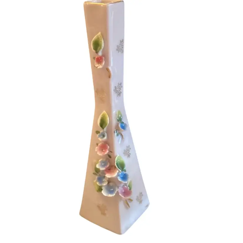 7” tall 2” wide amazingly all the flowers are intact. In perfect condition