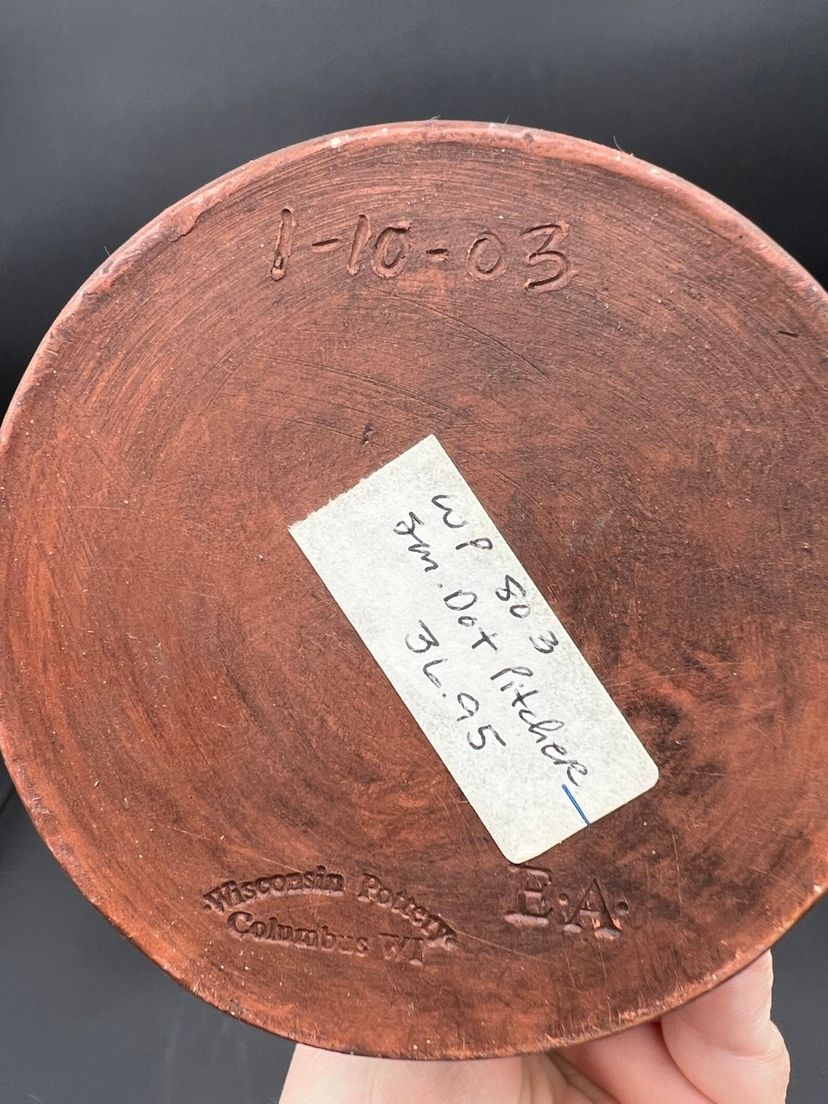 Beautiful Wisconsin Pottery Yellow Polka Dots Pitcher
