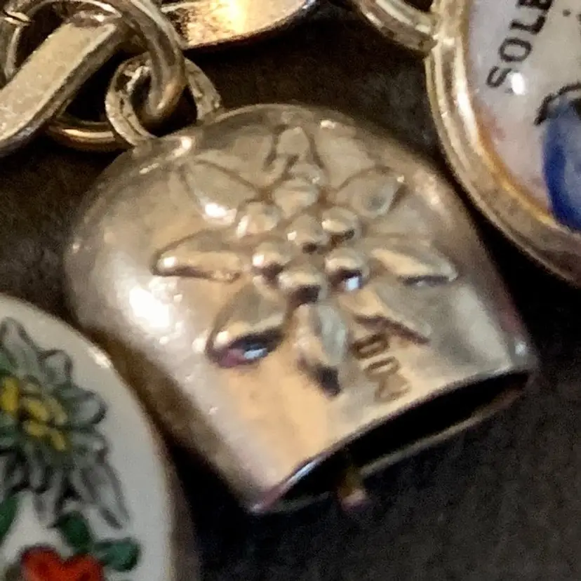 Bell Charms - Small Embossed Edelweiss Flower Austria - 800 Silver 2 sided design