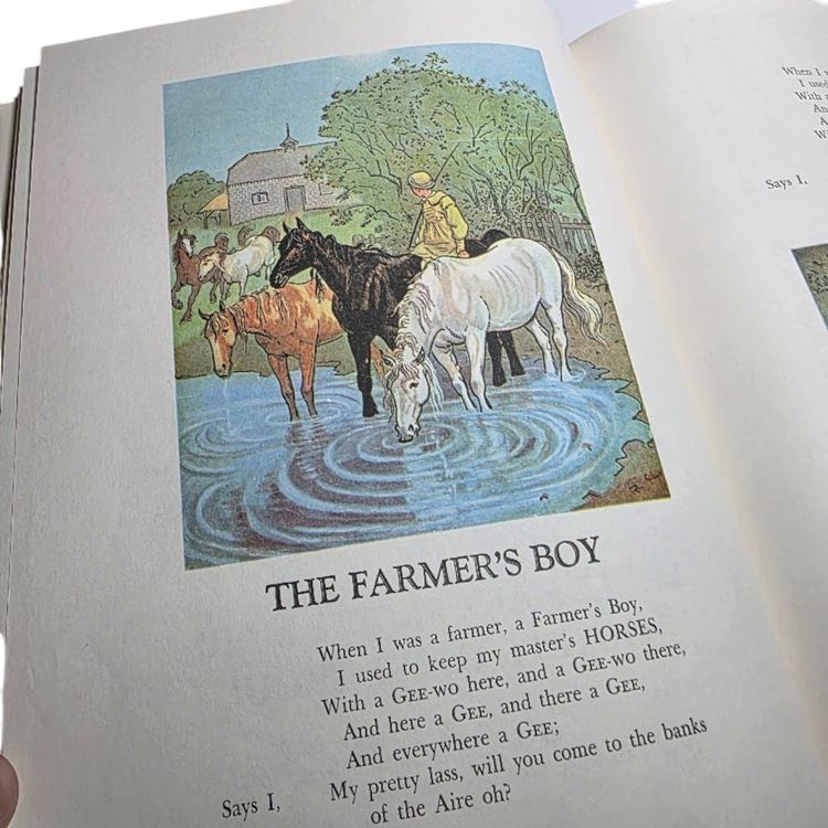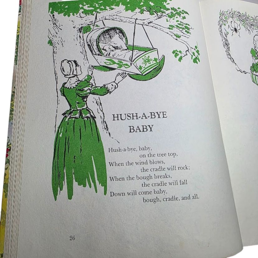 This vintage hardcover book, published by Parents' Magazine Enterprises, features timeless nursery rhymes and songs. Illustrated pages enhance each rhyme, offering a nostalgic journey through cherished children's literature.
