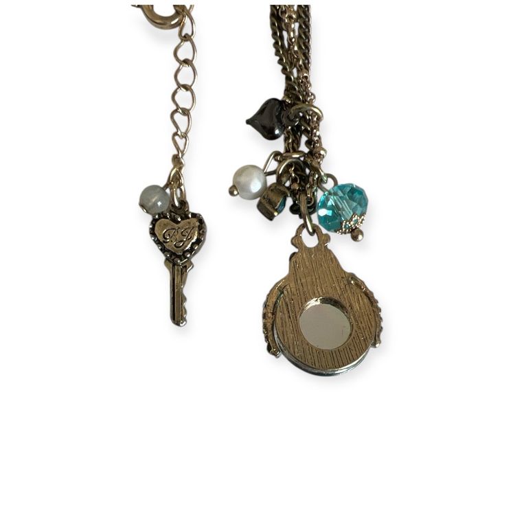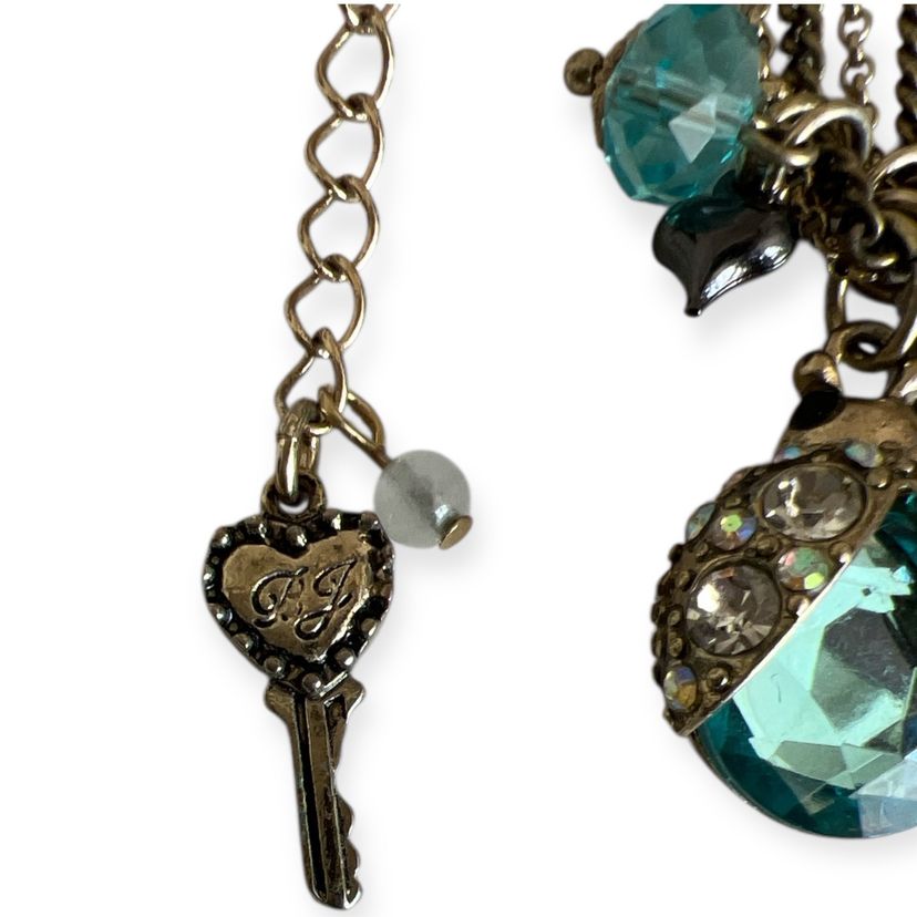Betsey Johnson Ladybug Aqua Crystal & AB Rhinestones Double Chain Necklace π #ofc-2
