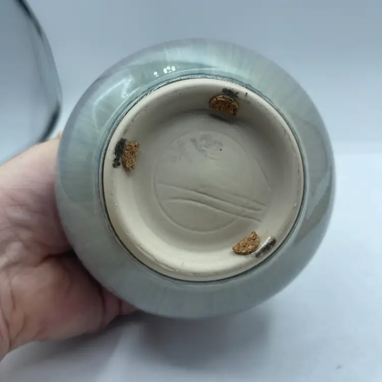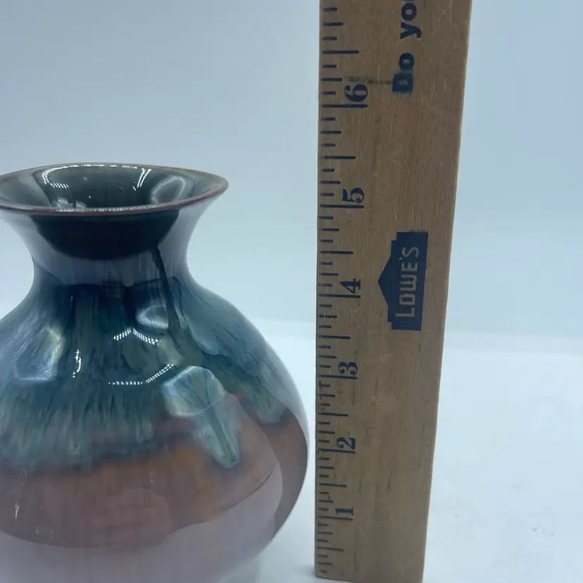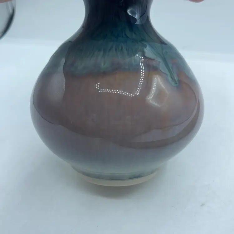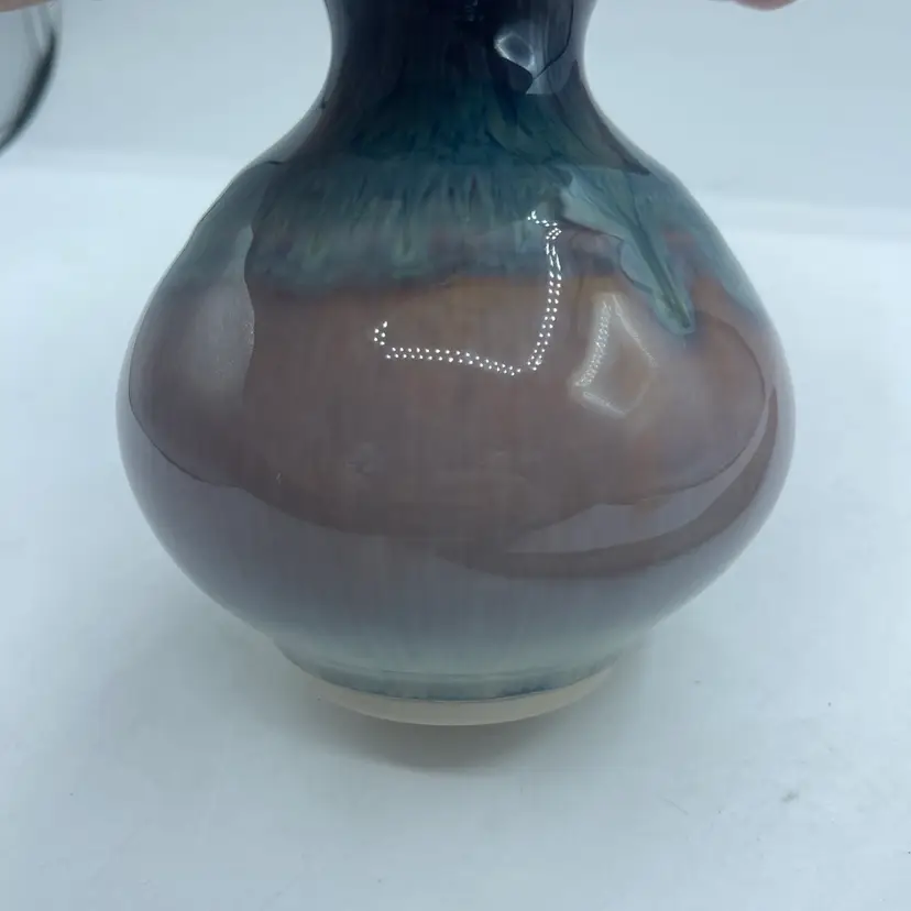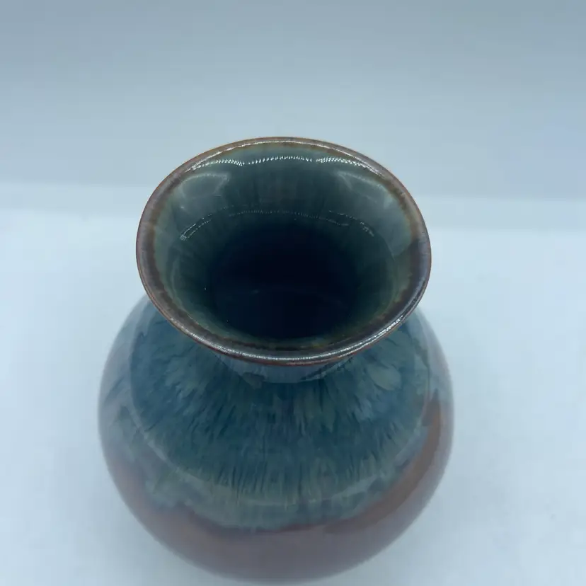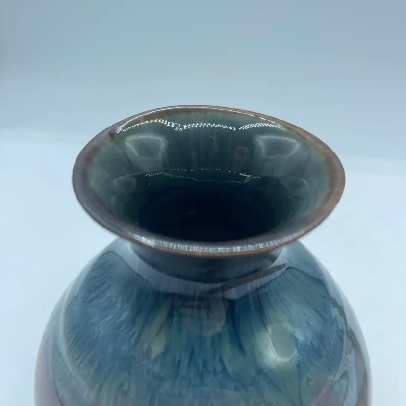 Bill Campbell Art Pottery Vase Drip Glaze Blue Brown White 5.25”