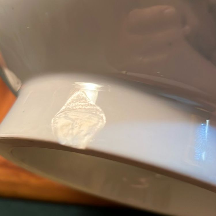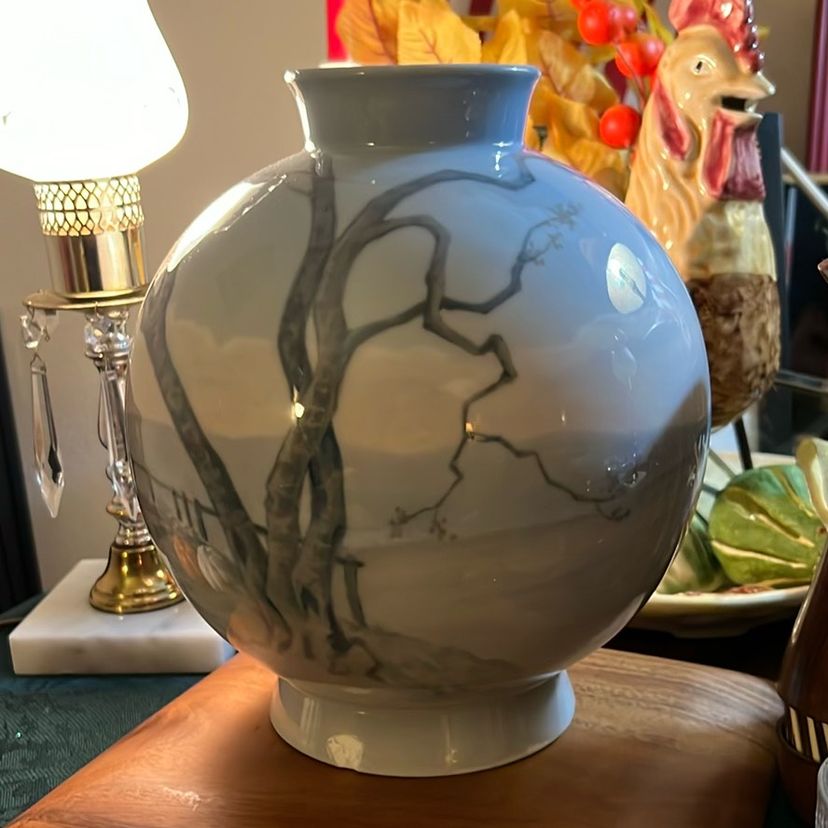 One condition sure, chip in the bottom rim of vase. See pictures. Good condition, pre owned