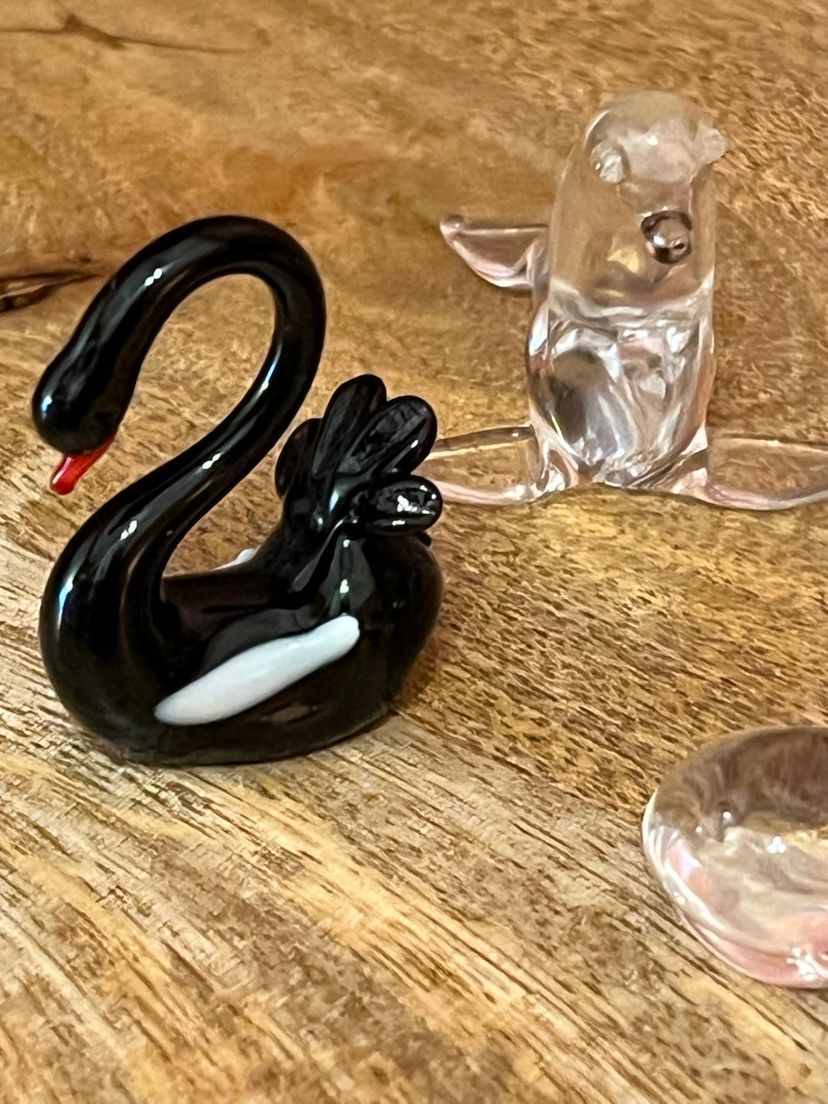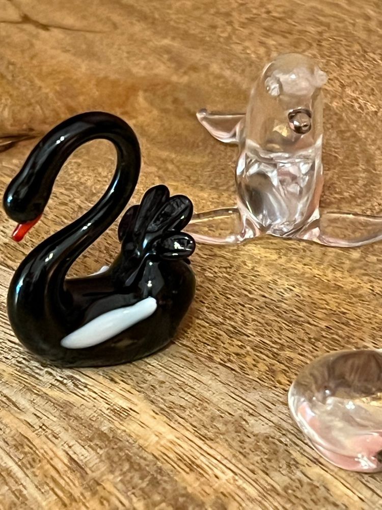 Tallest is 1.75” Choice of 1: Purple lobster Black swan Glass whale, seal, fish, or frog