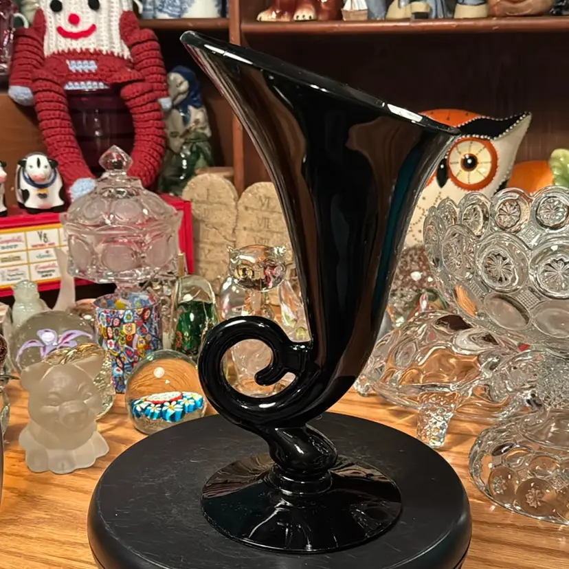 Black Amethyst Glass Cornucopia Cambridge Glass Company