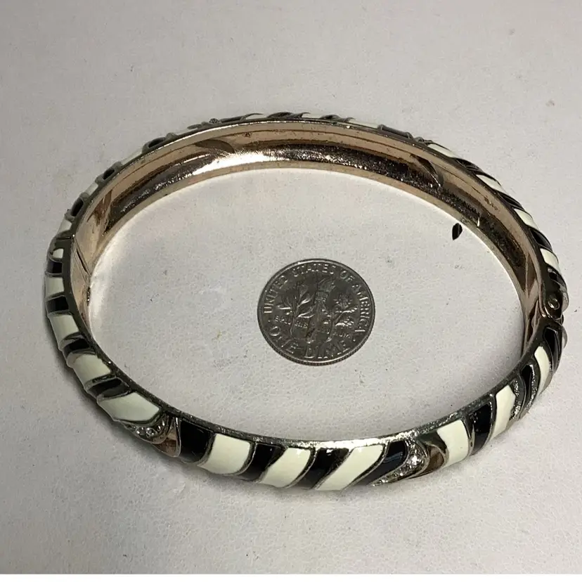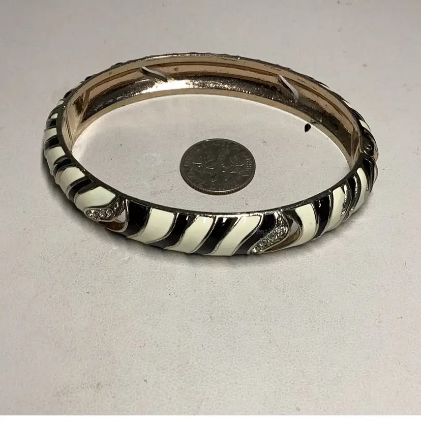 Black & White Clamper Bracelet With Rhinestones