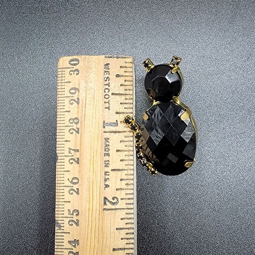 Gold tone rhinestone black cat pin back/tie tack/lapel pin perfect Halloween touch.