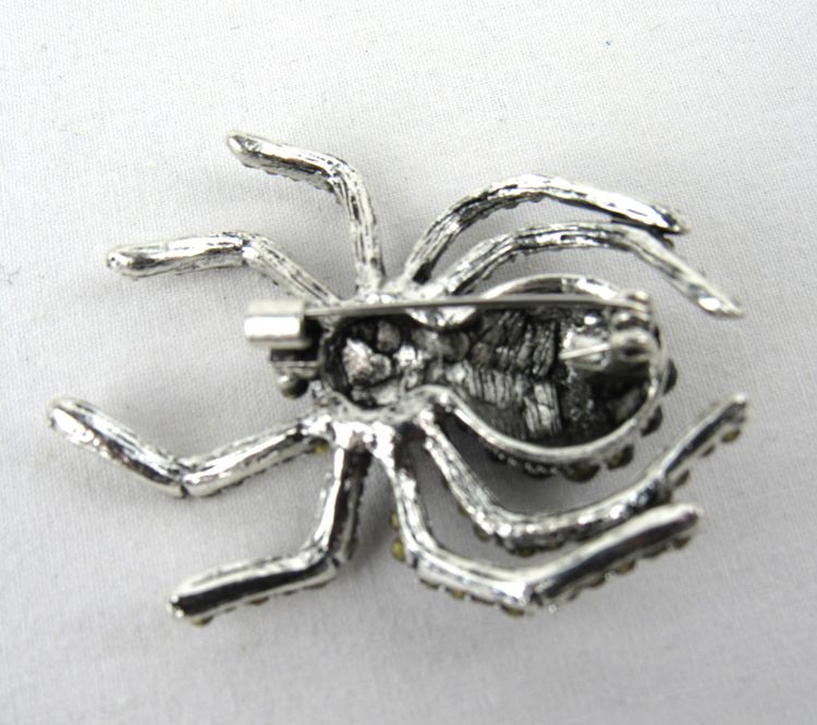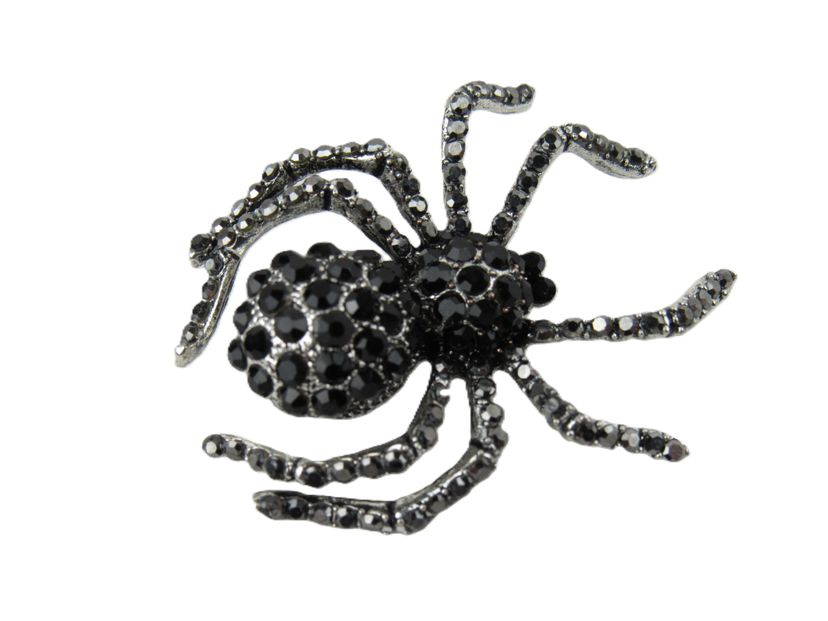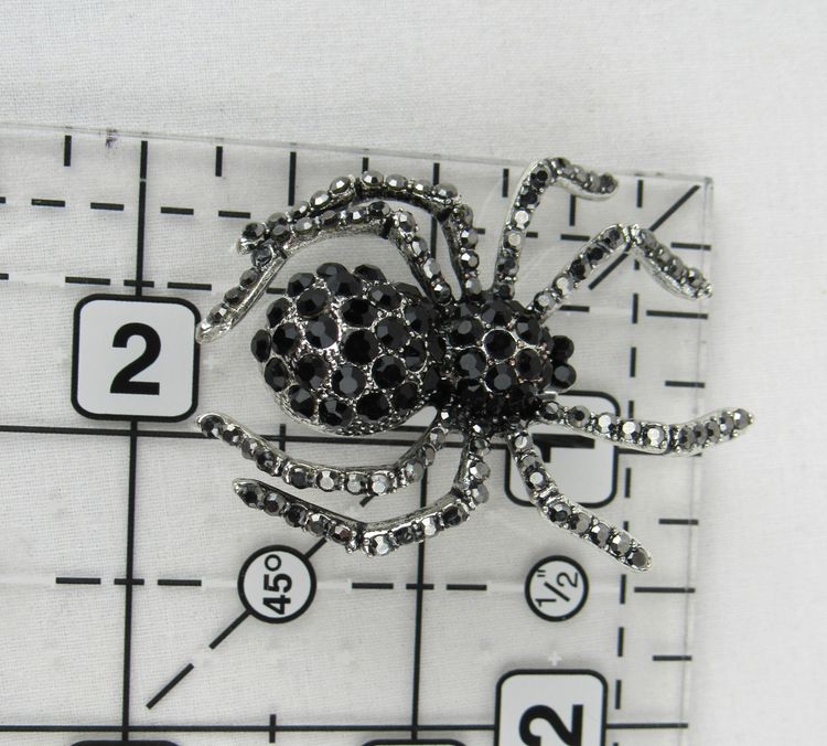 Excellent pre-owned condition. No missing stones. Pin is in excellent working order. Get your spook on for Halloween! Has black rhinestones on body and gray stones on legs. Measures just under 2" long x 1.5" wide.