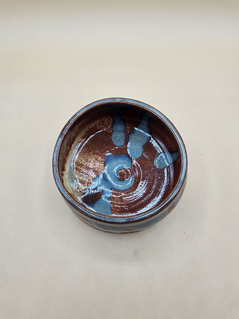 Blue & Copper Brown 4.5" x 3" Pottery Bowl