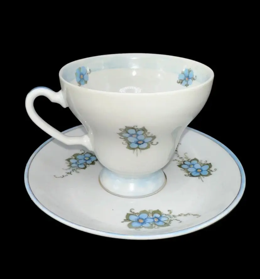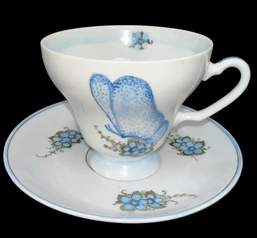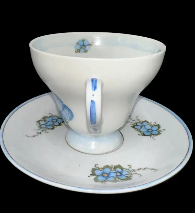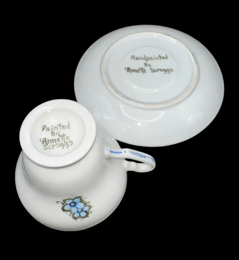 Really pretty handpainted teacup and saucer signed “Handpainted by Annette Scroggs”. New condition, never used, only displayed.