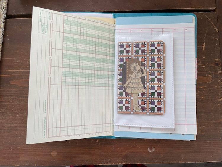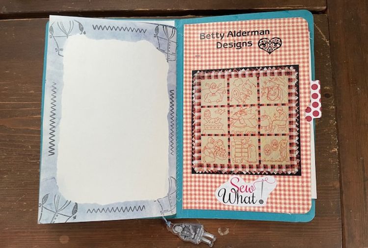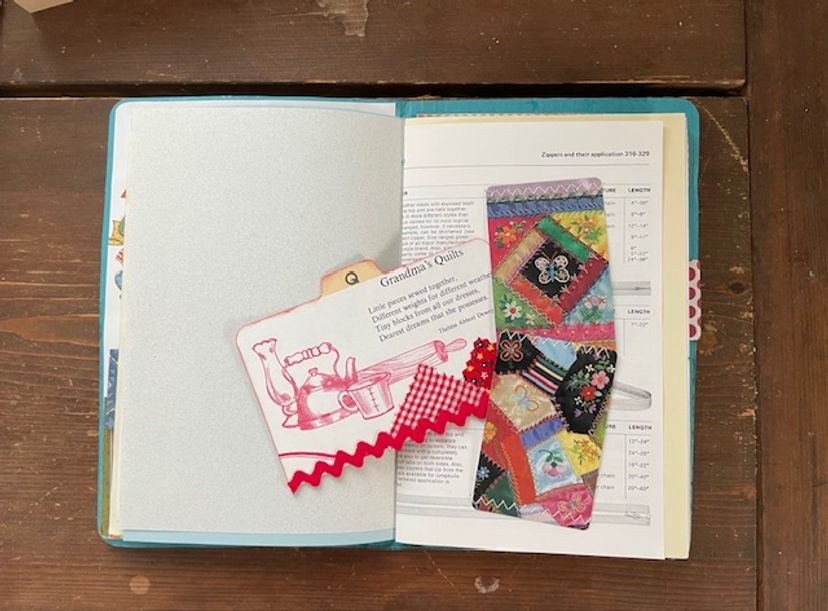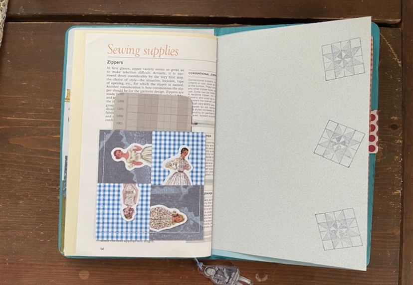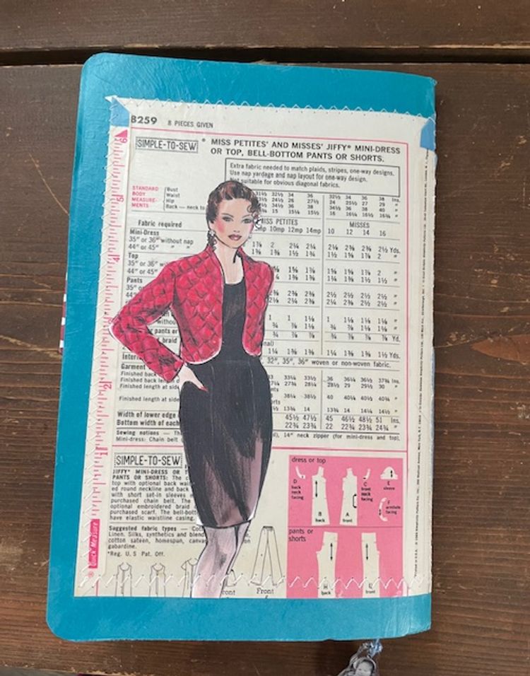 Soft cover single signature sewing themed journal. 6x9 inches; 50 pages; photo sleeves, sheets to document projects and lots of pockets.