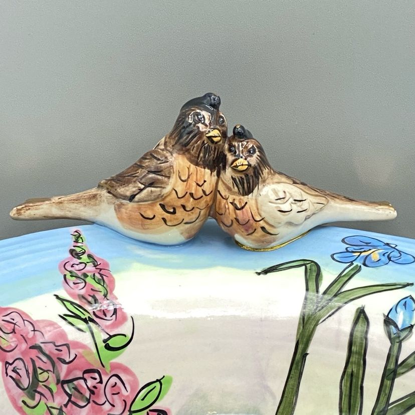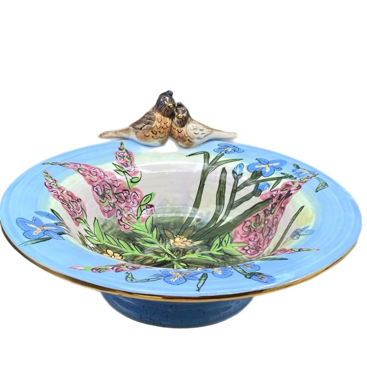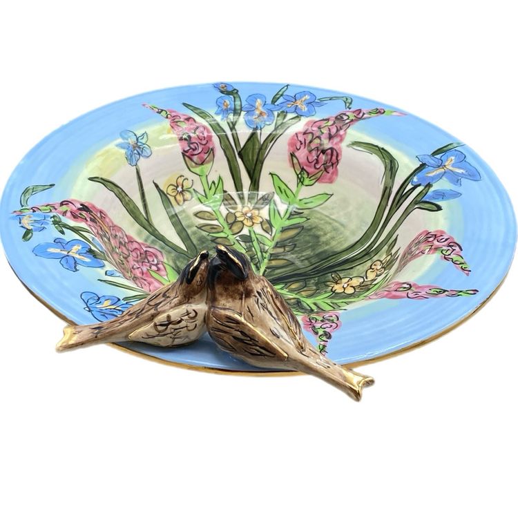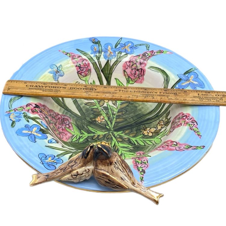 Vintage Bowl Blue Sky Birds Flowers Robins Song Whimsy Springtime