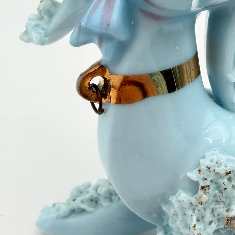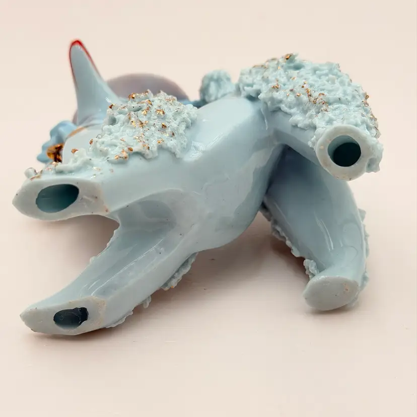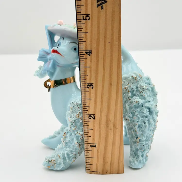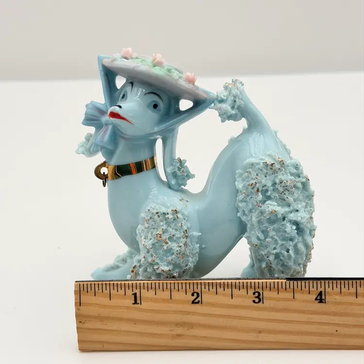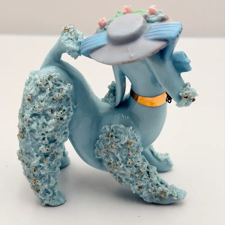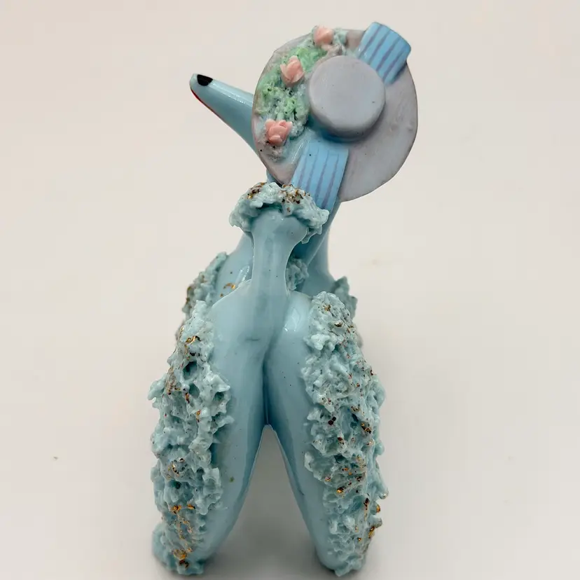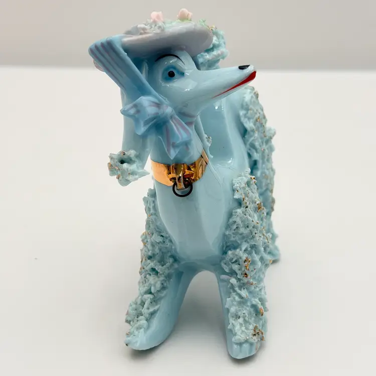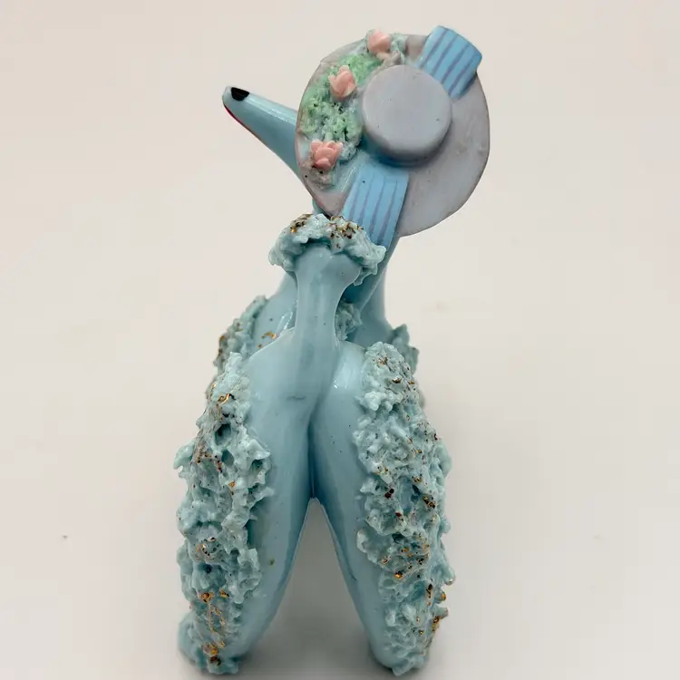 Blue Vintage Ceramic Spaghetti Poodle In Hat Figurine