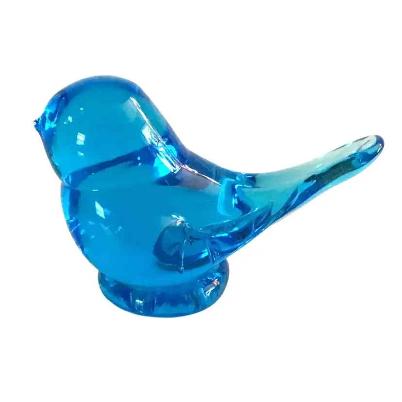 Item: Bluebird of Happiness glass figurine Signed: Yes but illegible to me Year: 1991 Color: Vibrant blue Material: Solid art glass Measurements: Approx. 3½” long × 2¾” tall Condition: Excellent – no chips, cracks, or damage Origin: Handmade in Arkansas, USA