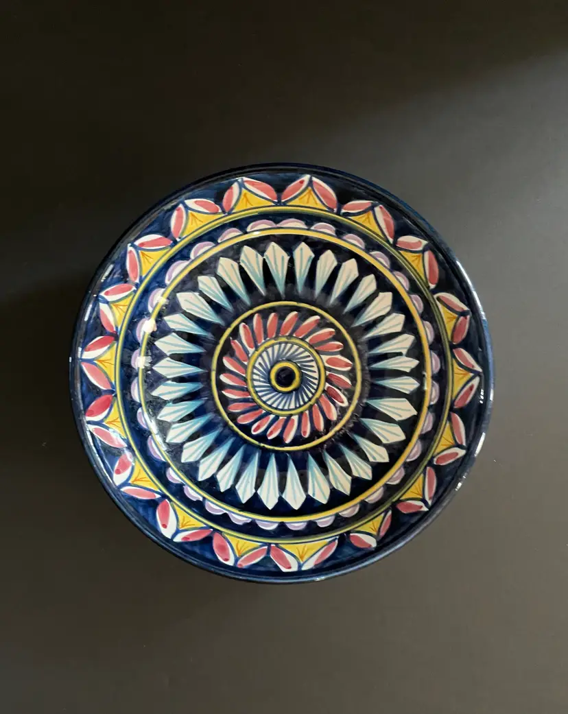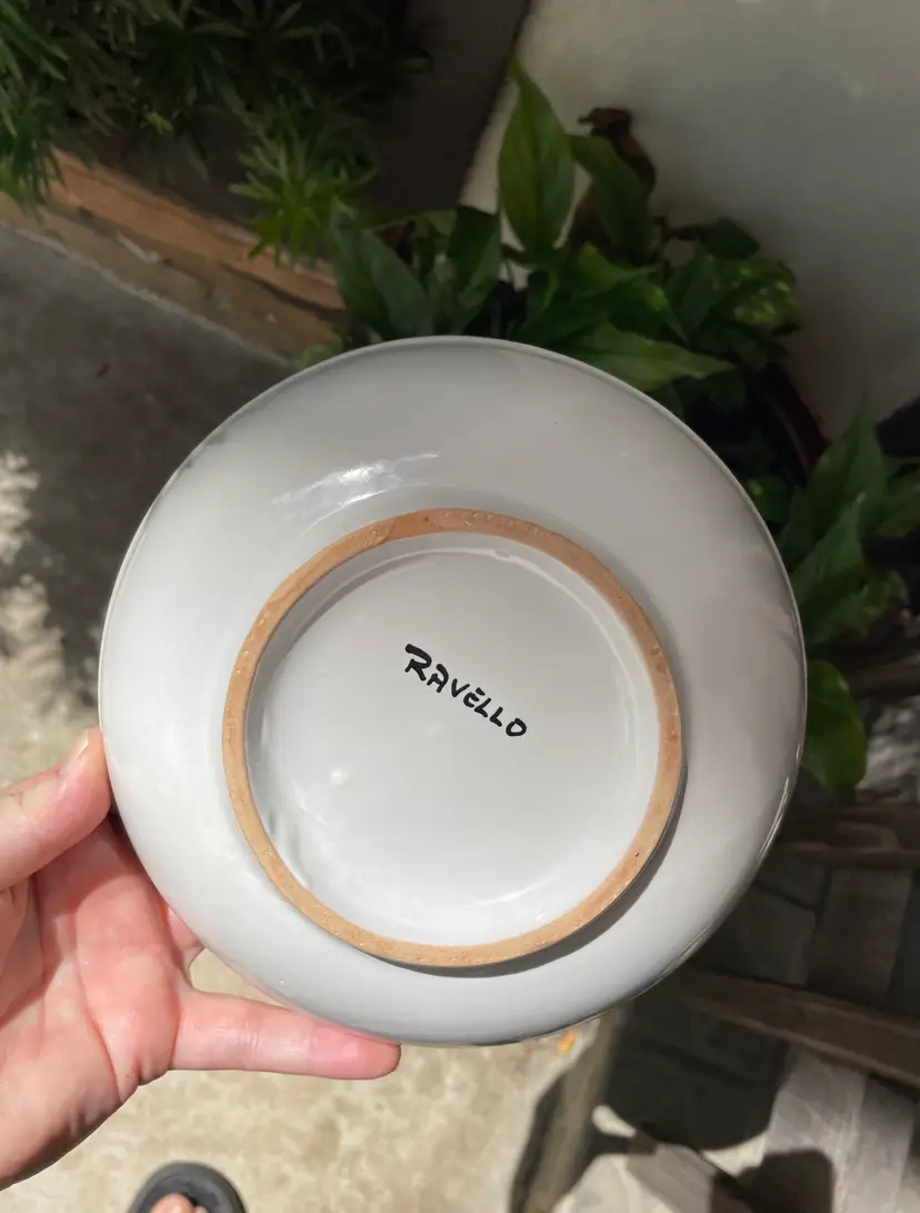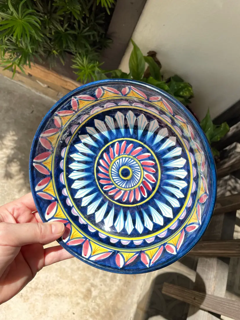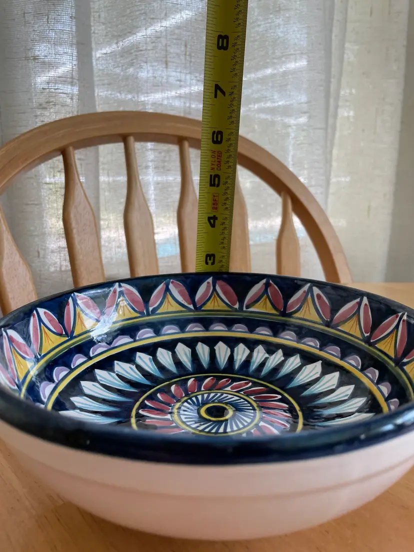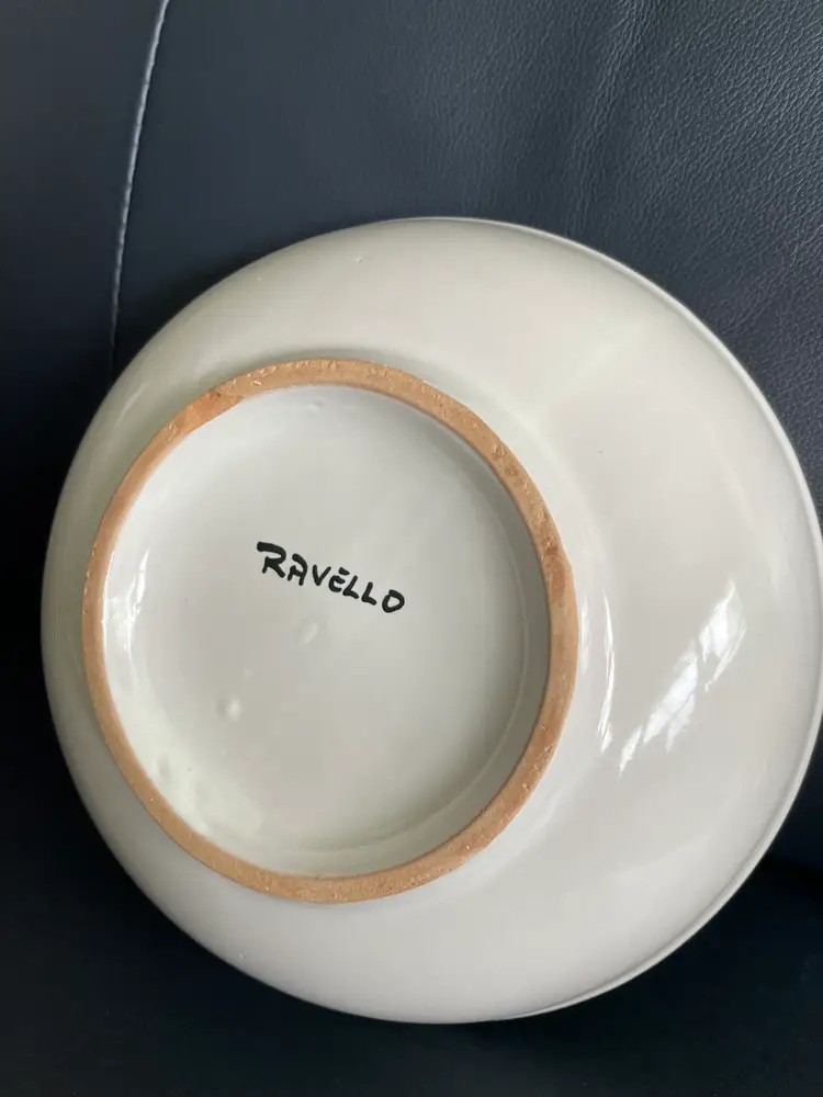 Handpainted Italian dish. Fun, colorful pattern. About the size of a cereal bowl (not quite the size of a serving bowl, unless it's fruit or something similar) with "Ravello" written on the bottom.