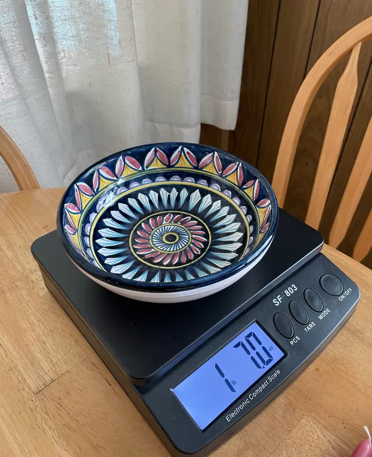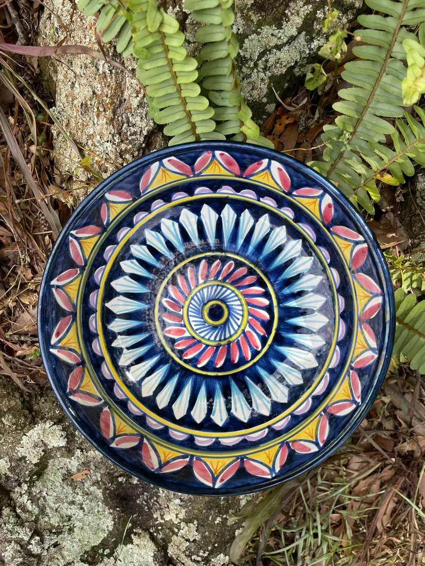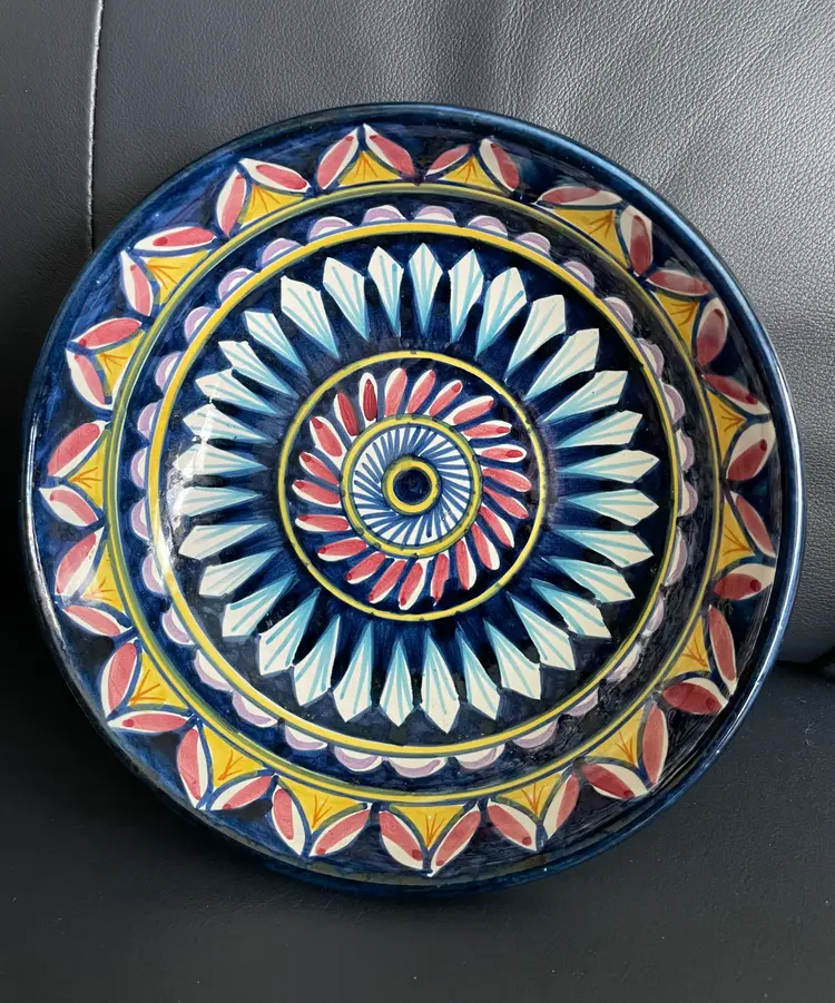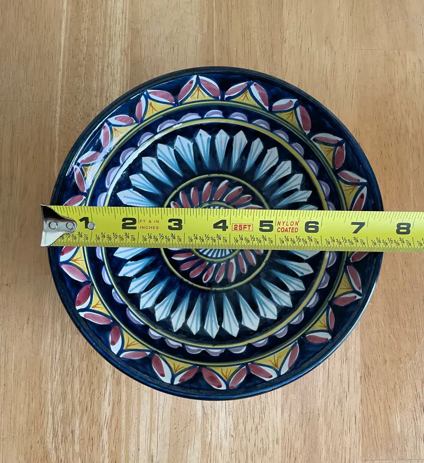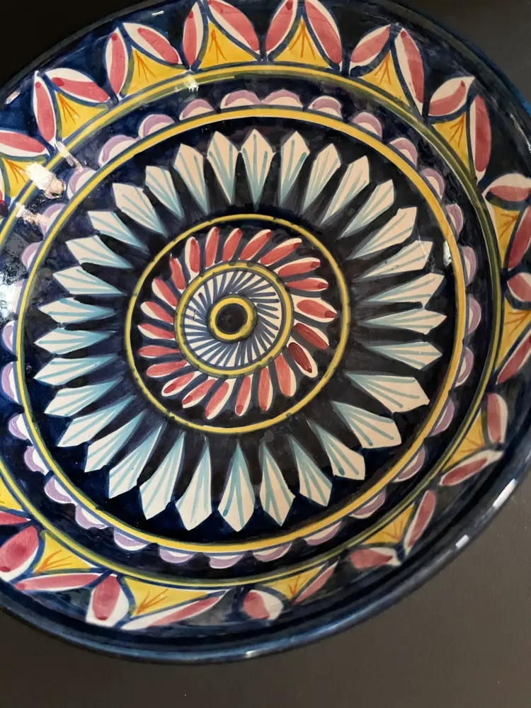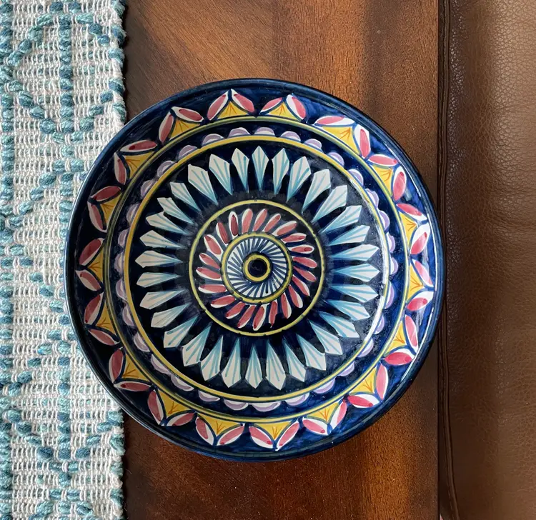 Handpainted Italian dish. Fun, colorful pattern. About the size of a cereal bowl (not quite the size of a serving bowl, unless it's fruit or something similar) with "Ravello" written on the bottom.