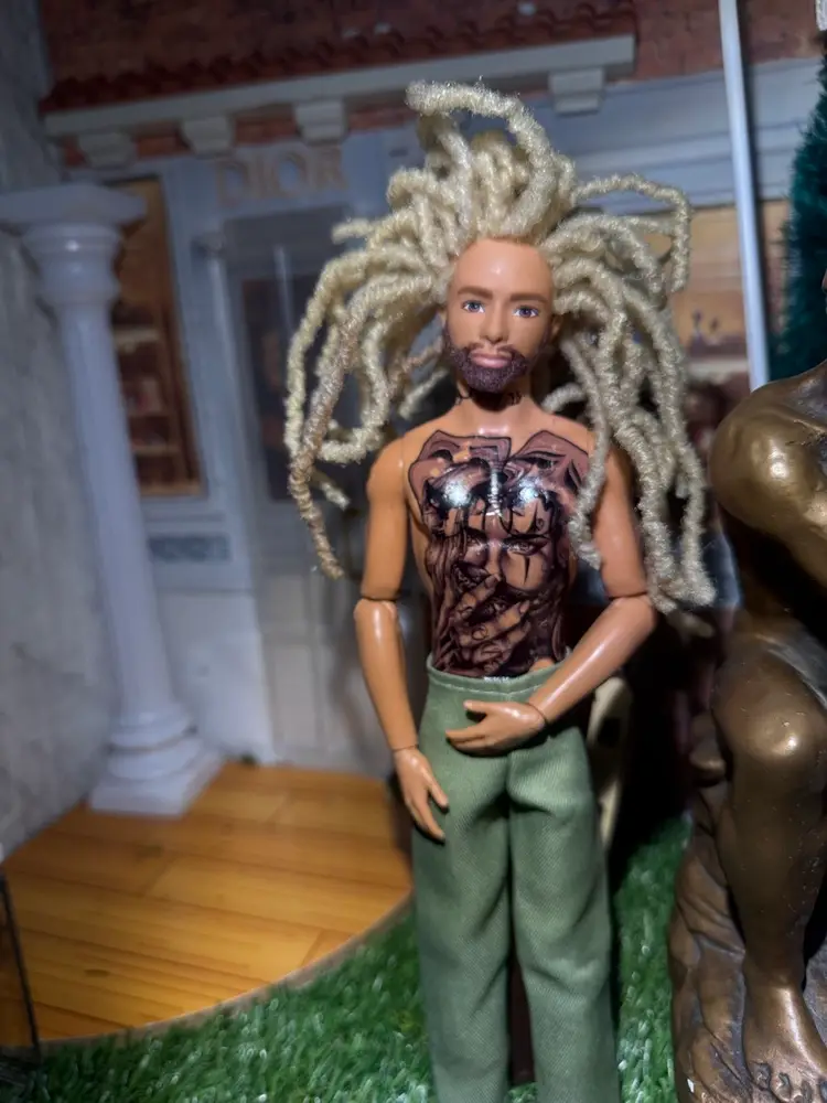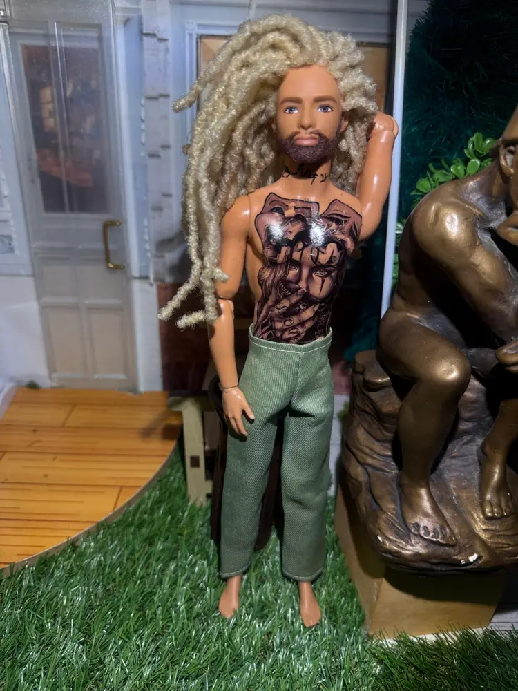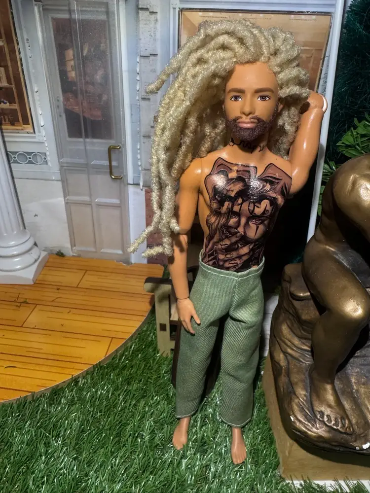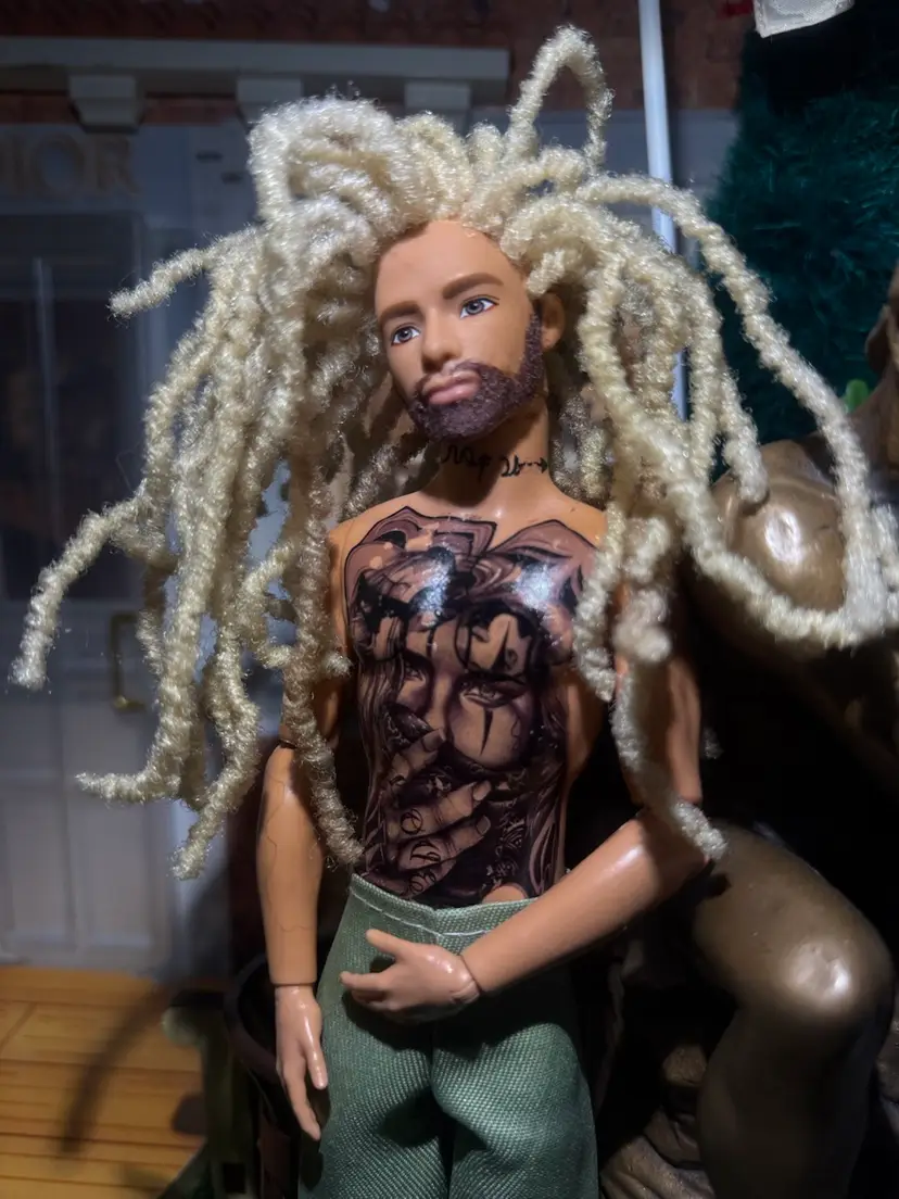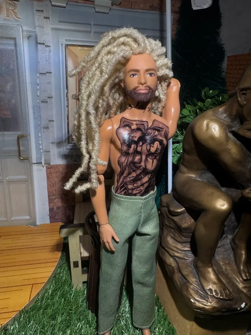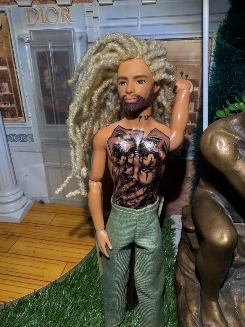 Custom Articulate Male Doll 1 of 1 tattoos locs